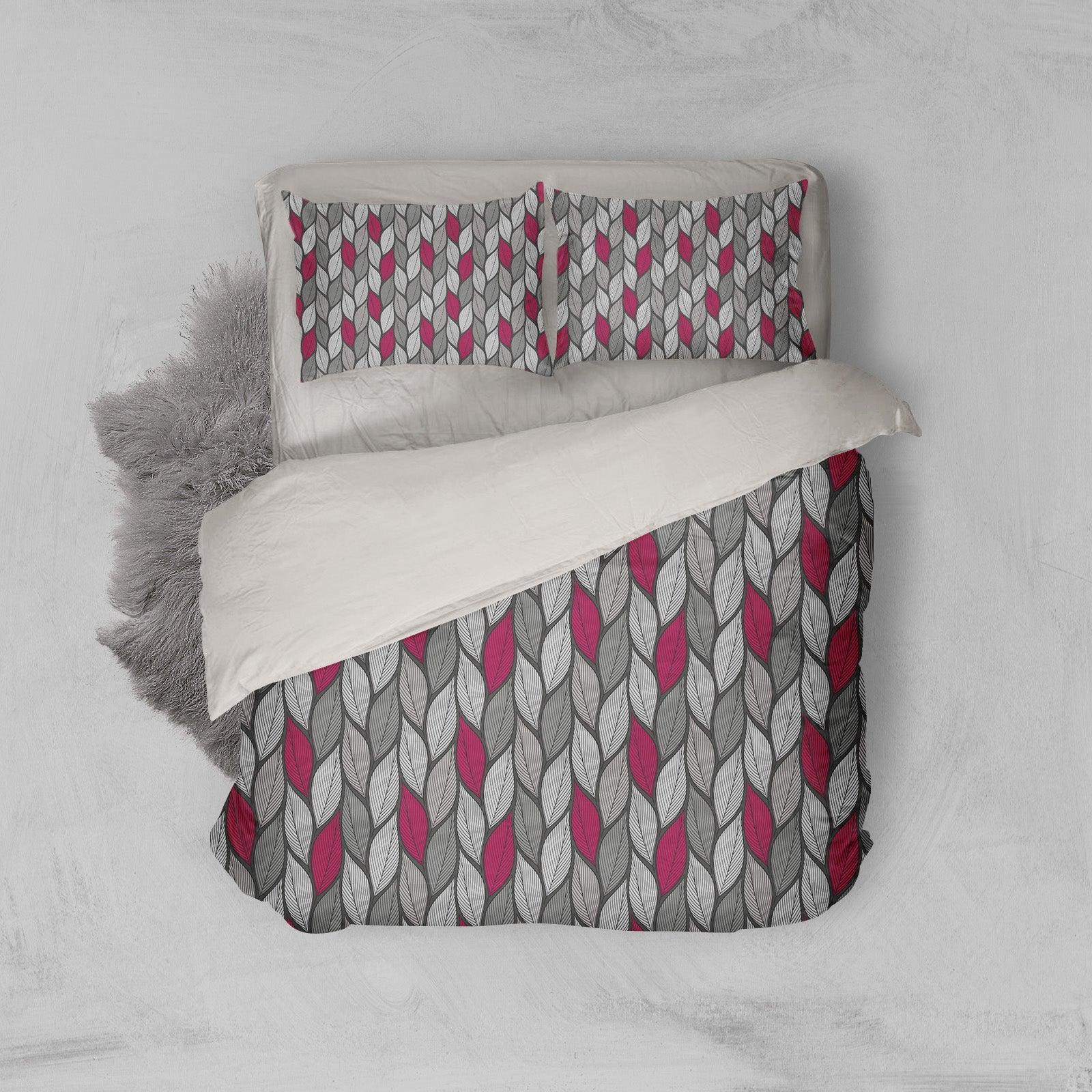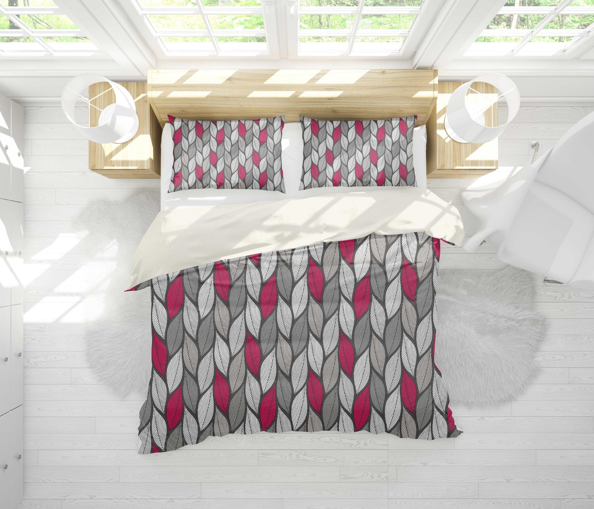 3D Black Grey Red Leaves Quilt Cover Set Bedding Set Pillowcases 140