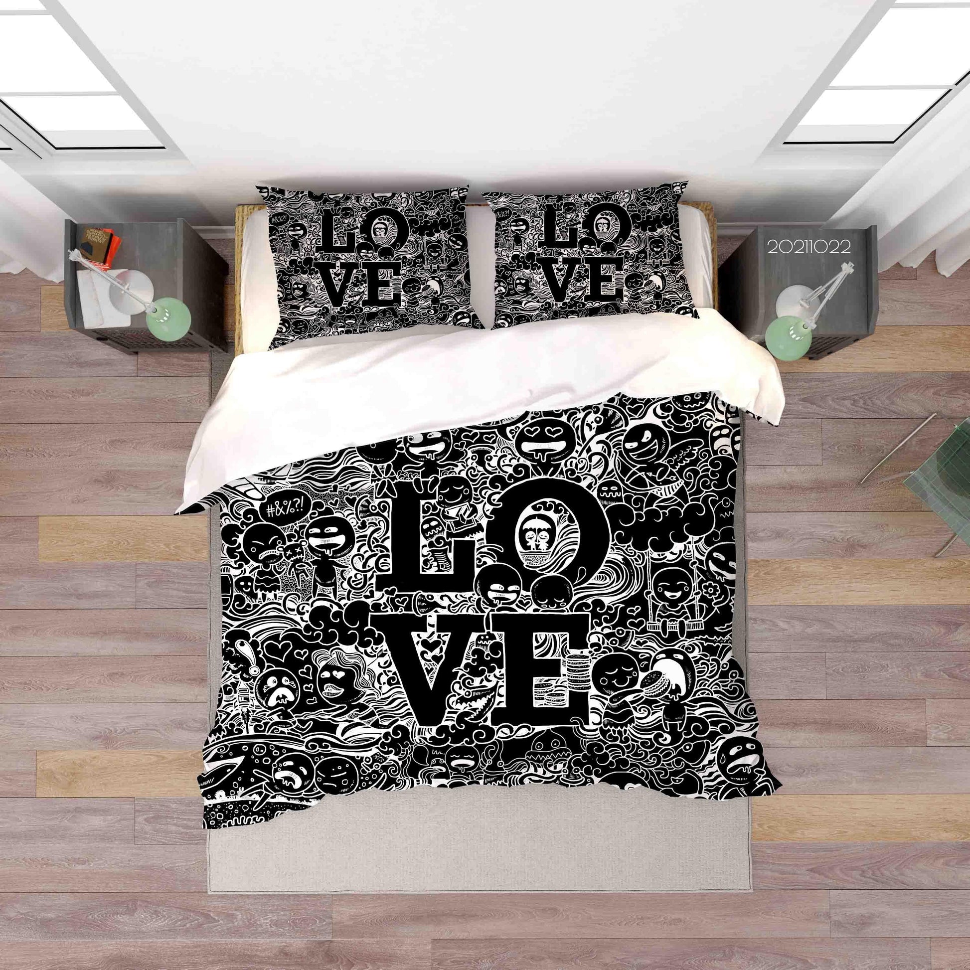 3D Black Love Doodle Quilt Cover Set Bedding Set Duvet Cover Pillowcases 95