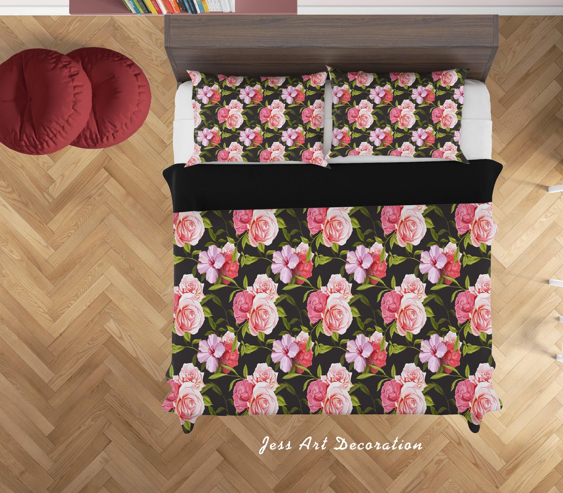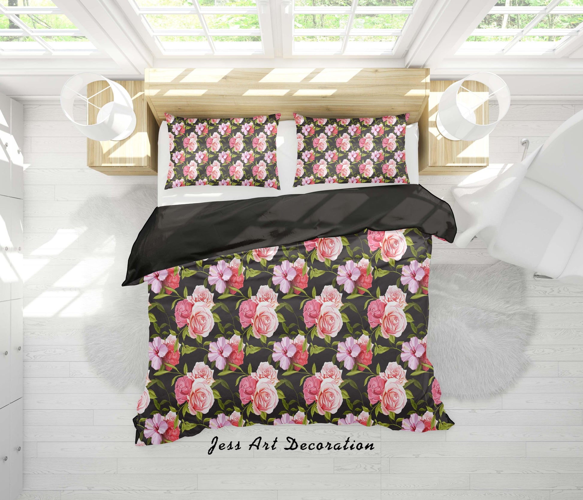 3D Black Pink Flowers Quilt Cover Set Bedding Set Duvet Cover Pillowcases SF07
