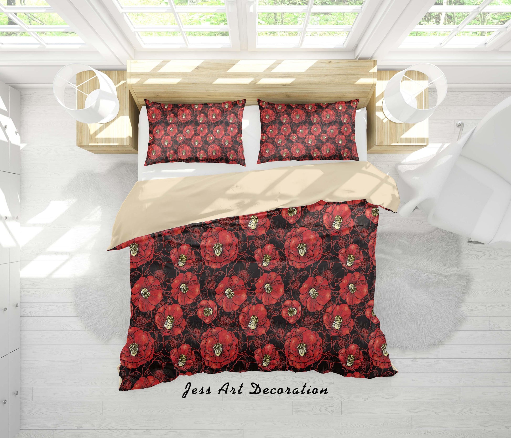 3D Black Red Floral Quilt Cover Set Bedding Set Duvet Cover Pillowcases SF116