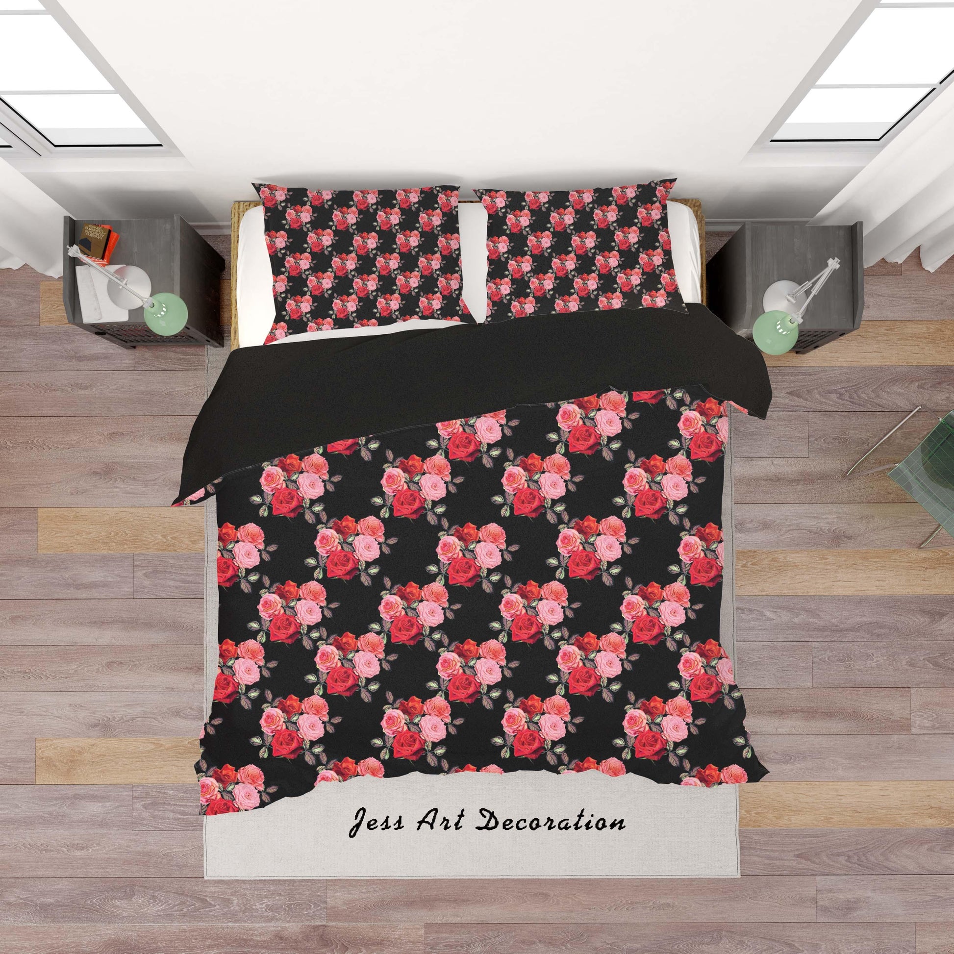 3D Black Red Floral Quilt Cover Set Bedding Set Duvet Cover Pillowcases SF85