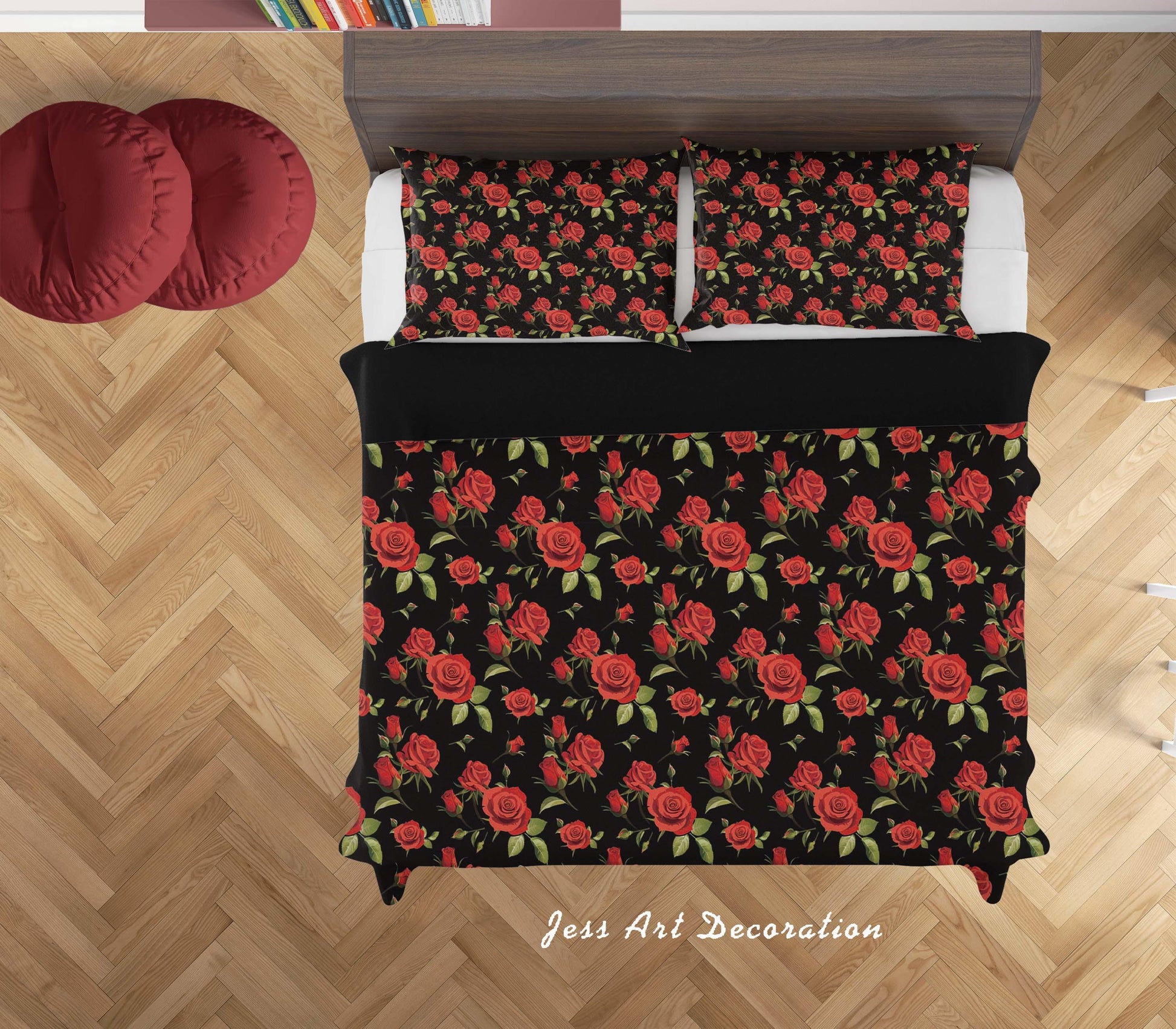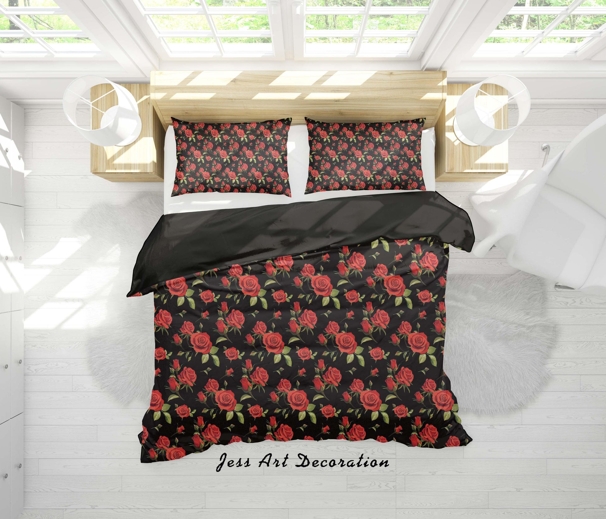 3D Black Red Rose Flowers Quilt Cover Set Bedding Set Duvet Cover Pillowcases SF92