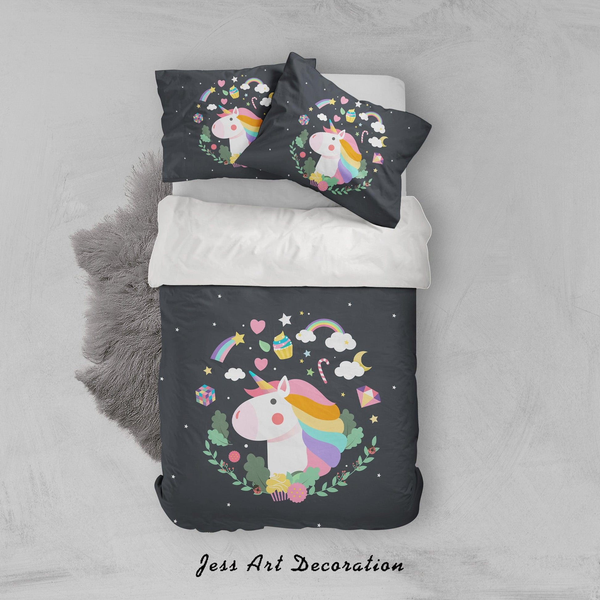 3D Black Unicorn Rainbow Star Floral Quilt Cover Set Bedding Set Pillowcases 81