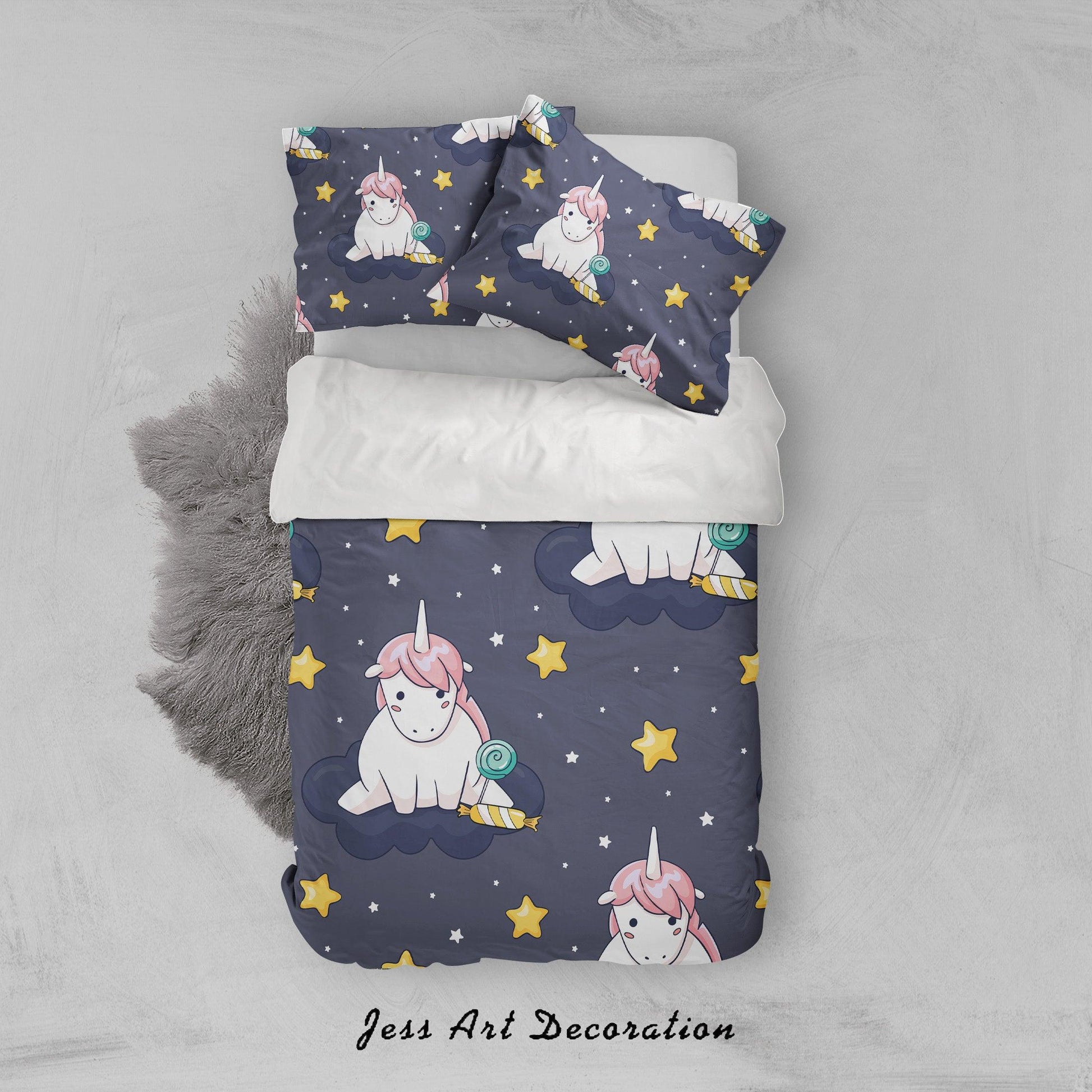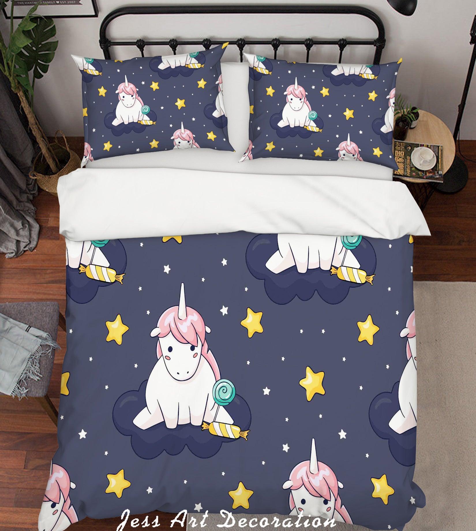 3D Black Unicorn Star Quilt Cover Set Bedding Set Pillowcases 32