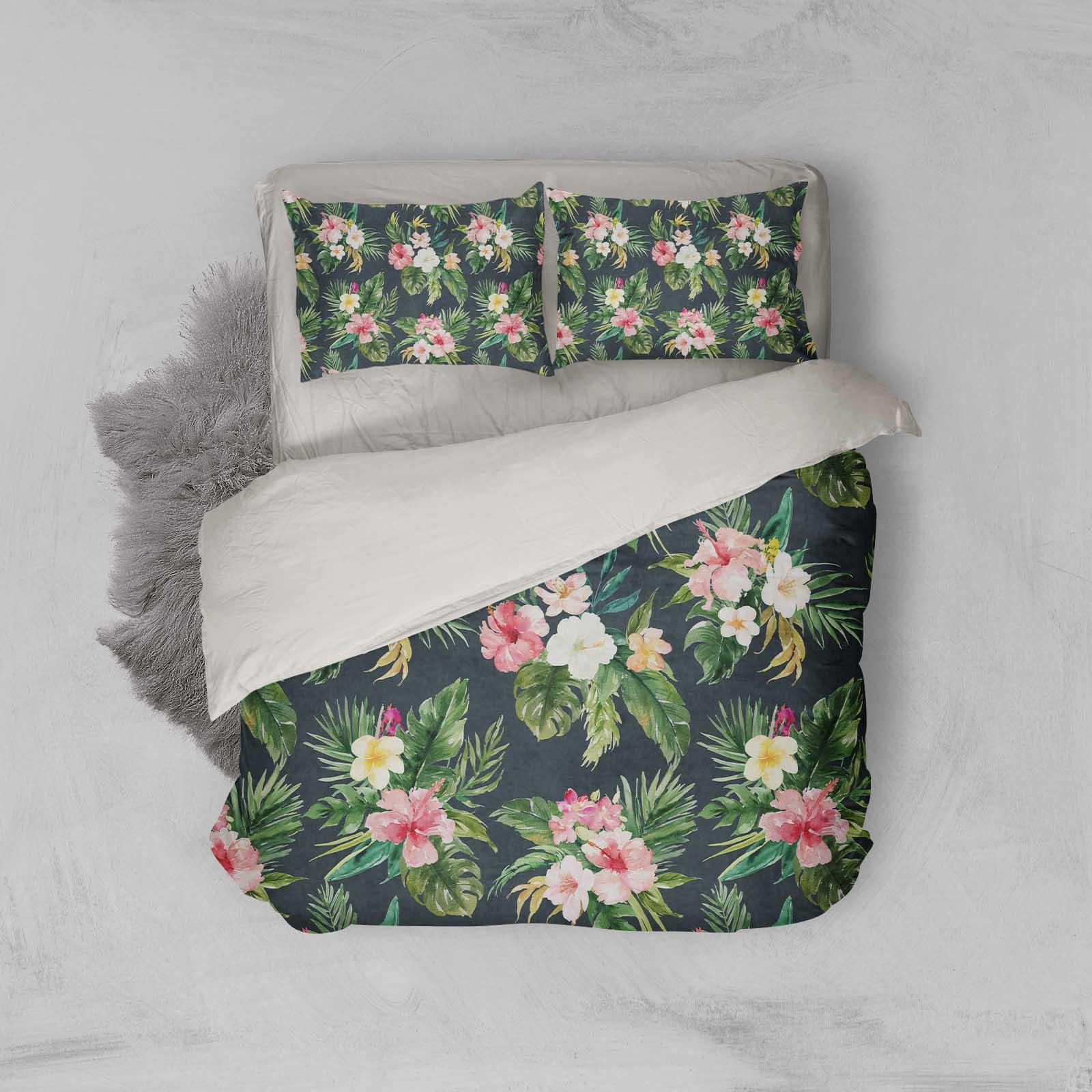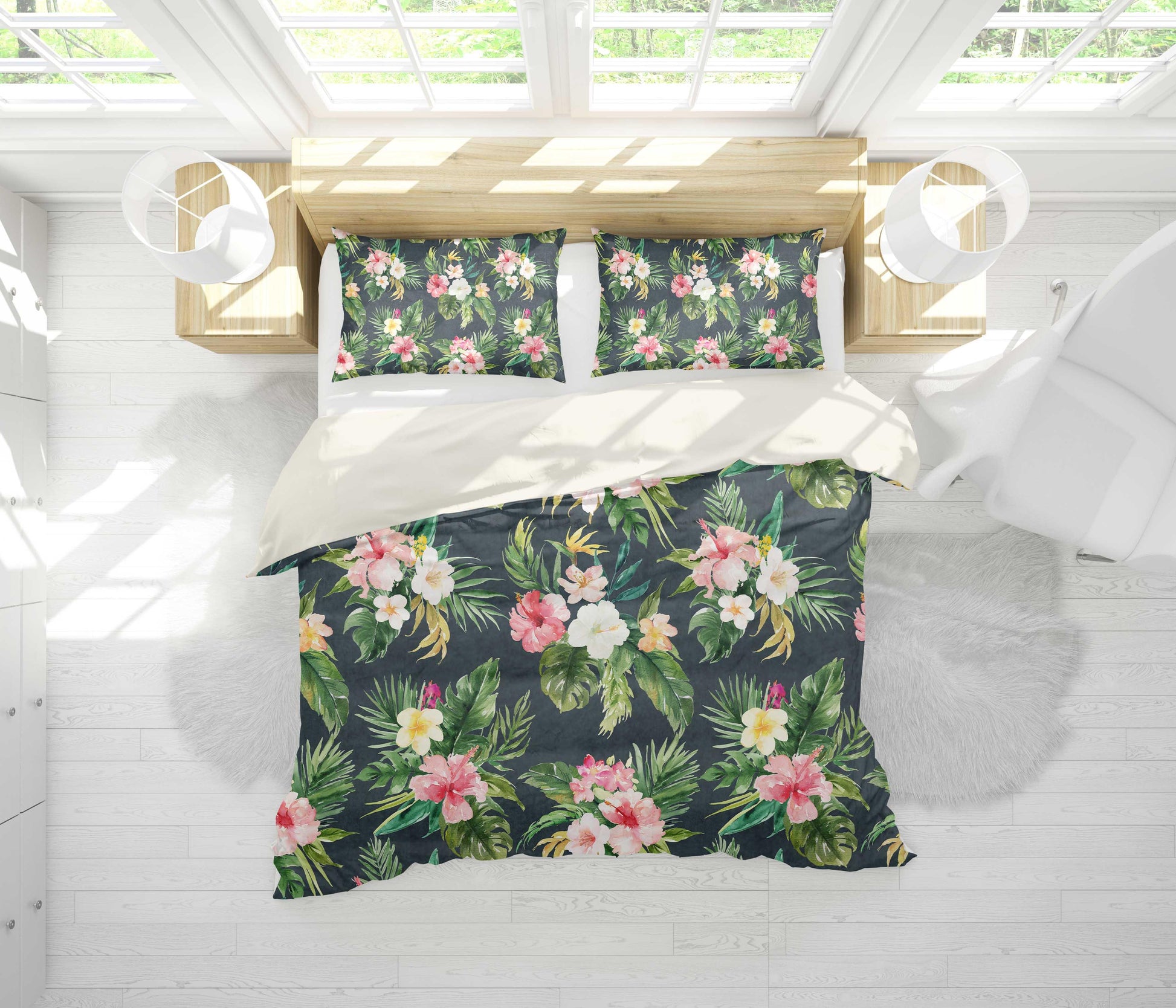 3D Black Watercolor Floral Leaves Quilt Cover Set Bedding Set Pillowcases 01