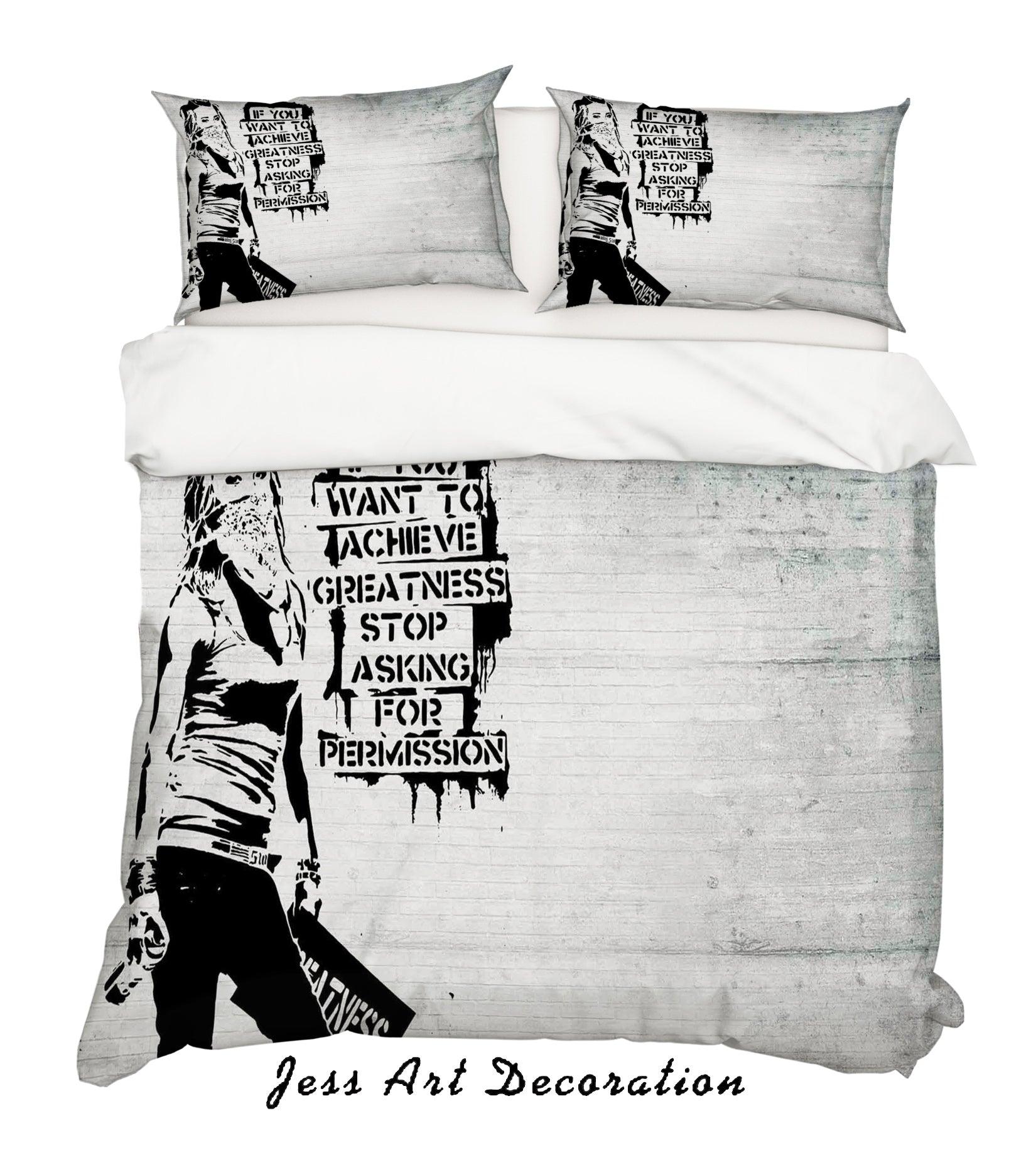 3D Black White Banksy Fashionable Girl Letter Quilt Cover Set Bedding Set Duvet Cover Pillowcases ZY D77