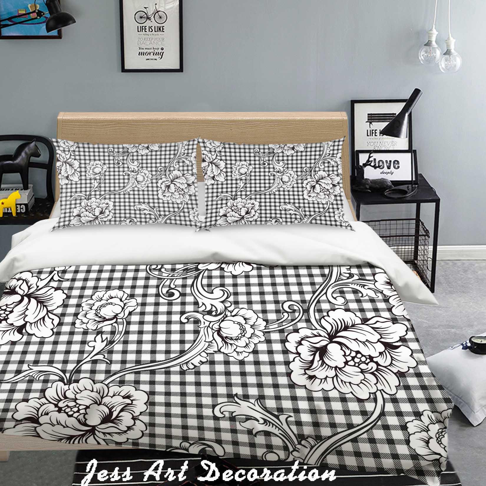 3D Black White Flowers Pattern Quilt Cover Set Bedding Set Pillowcases 215