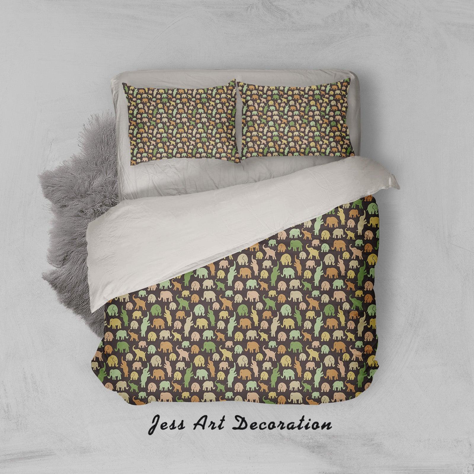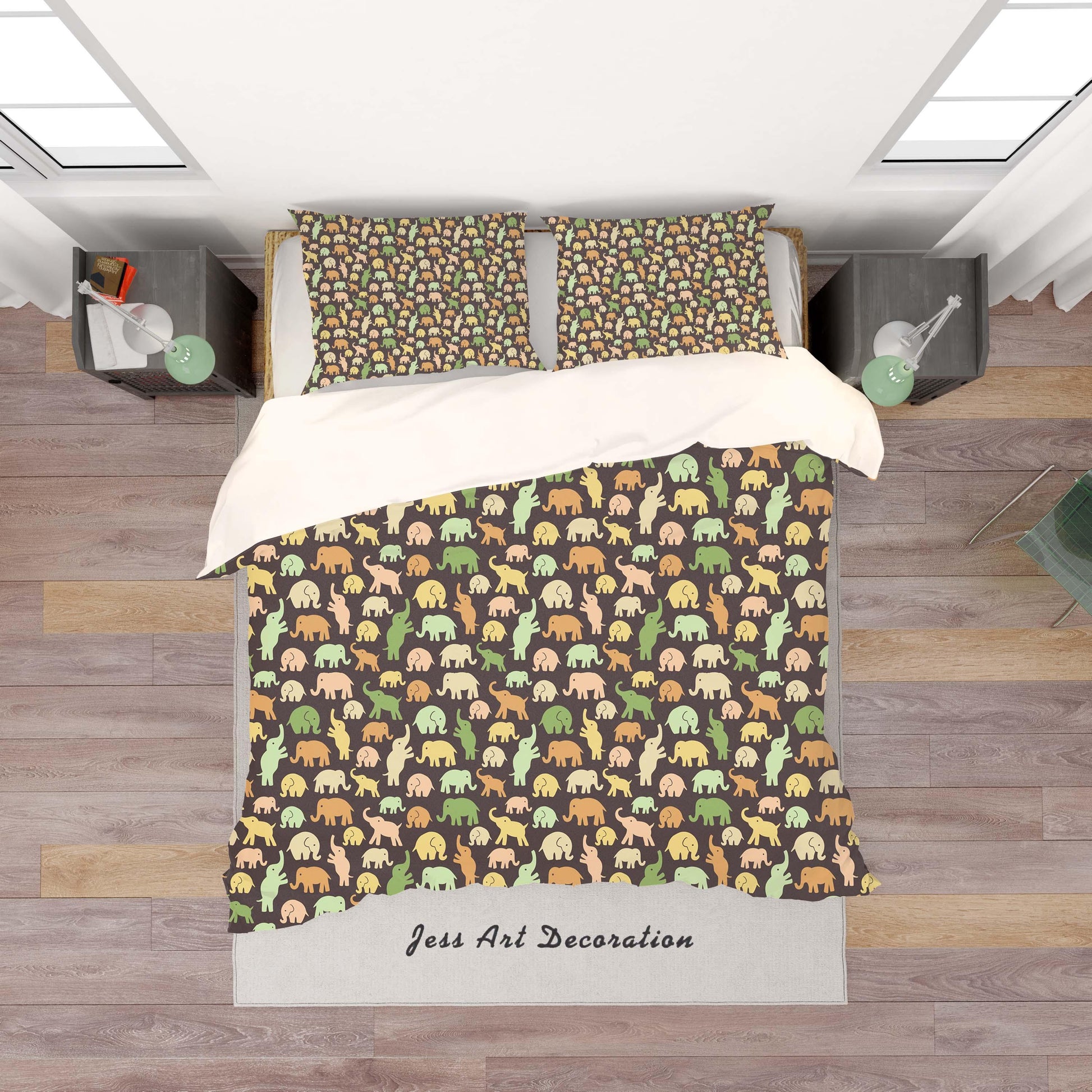 3D Black Yellow Green Elephant Quilt Cover Set Bedding Set Pillowcases 34