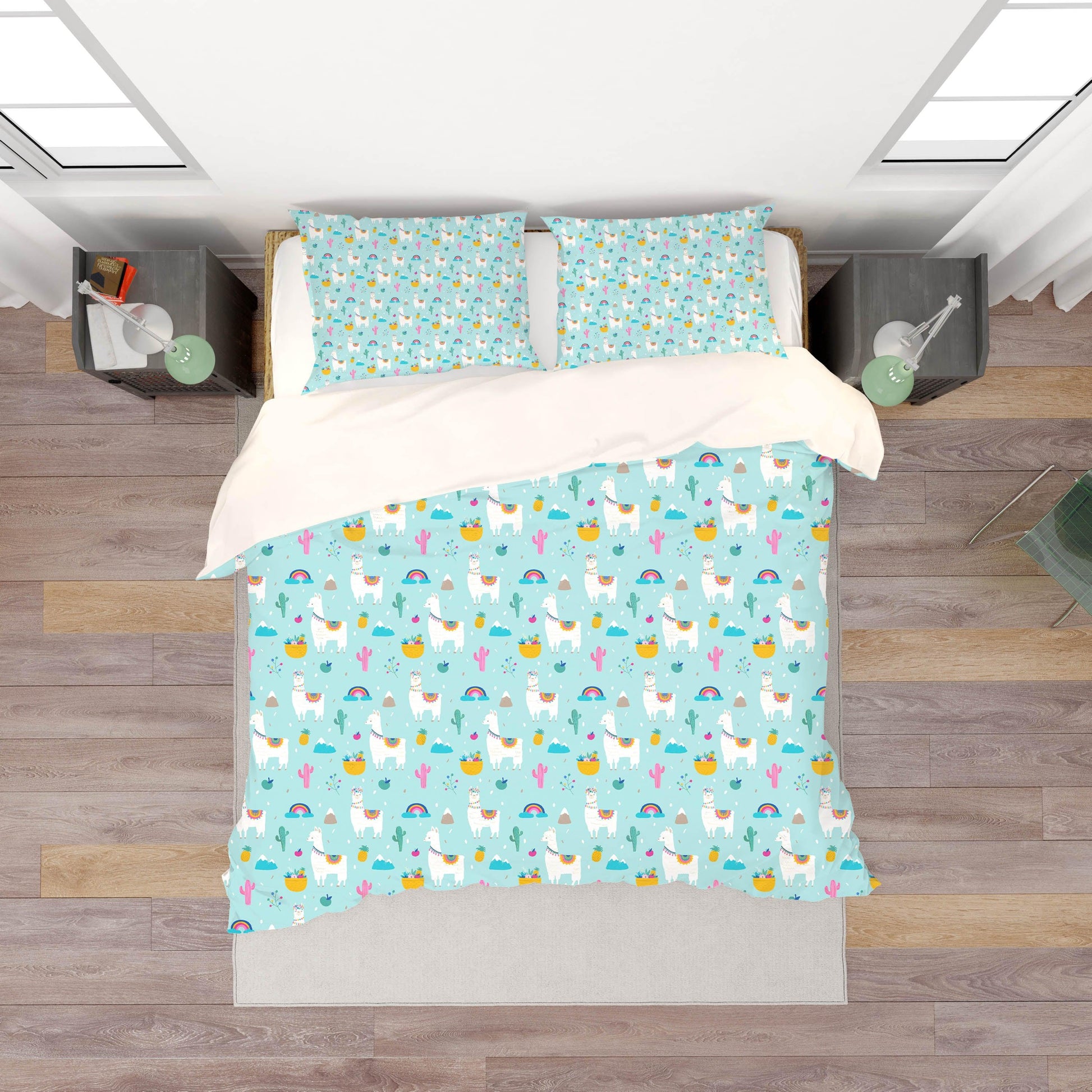 3D Blue Alpaca Cactus Pineapple Quilt Cover Set Bedding Set Pillowcases 172