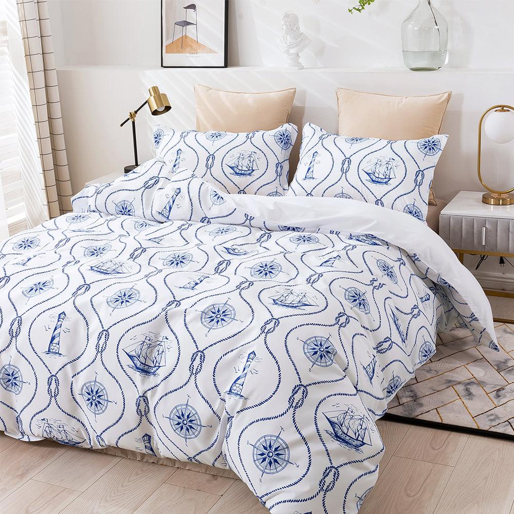 3D Blue Anchor Lighthouse Sailboat Quilt Cover Set Bedding Set Duvet Cover Pillowcases 453