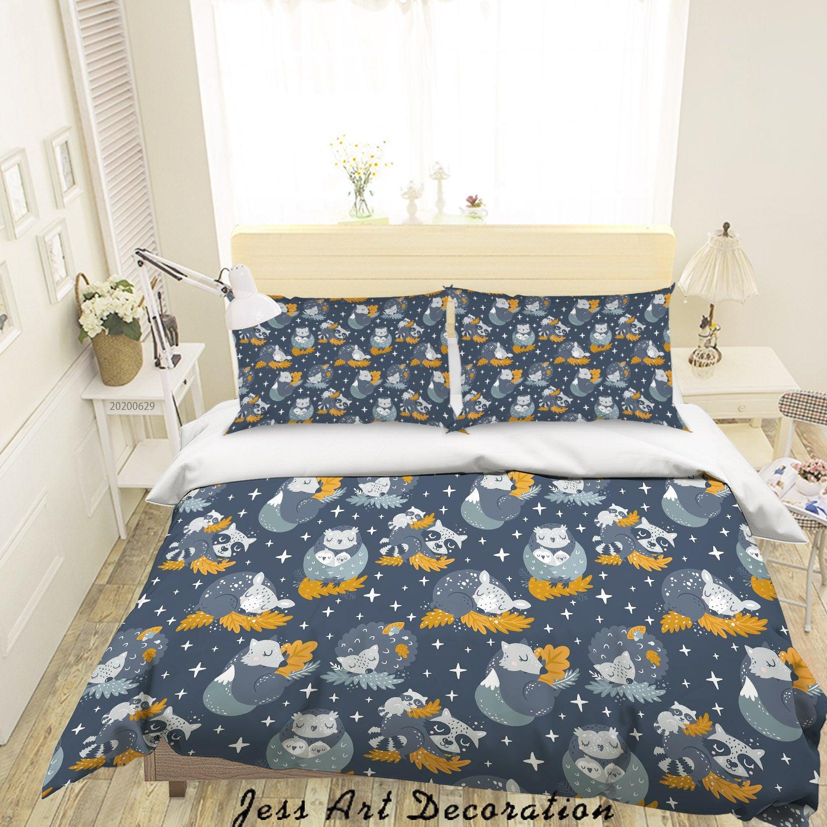 3D Blue Animal Deer Fox Tanuki Stars Quilt Cover Set Bedding Set Duvet Cover Pillowcases SF01