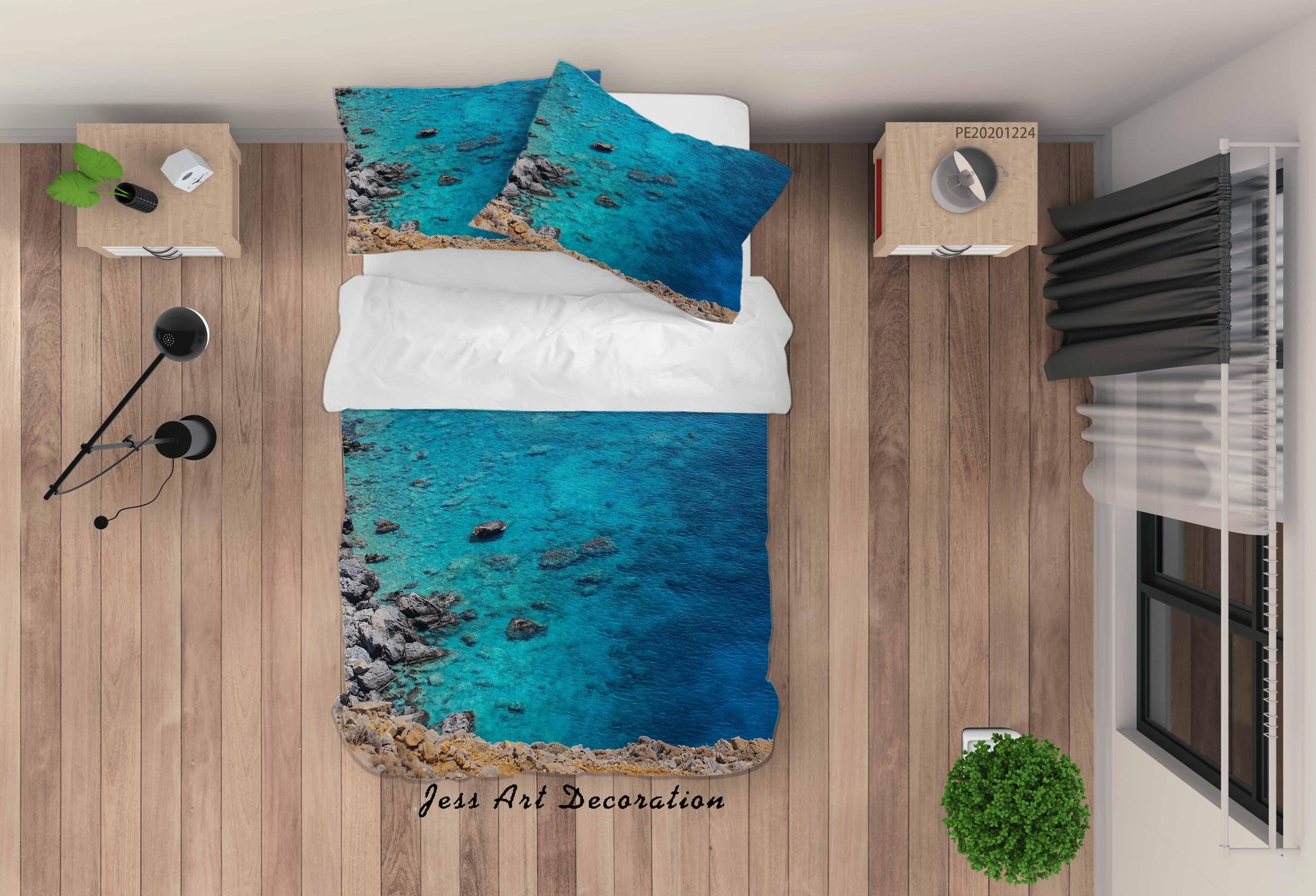 3D Blue Beach Stone Quilt Cover Set Bedding Set Duvet Cover Pillowcases 109 LQH
