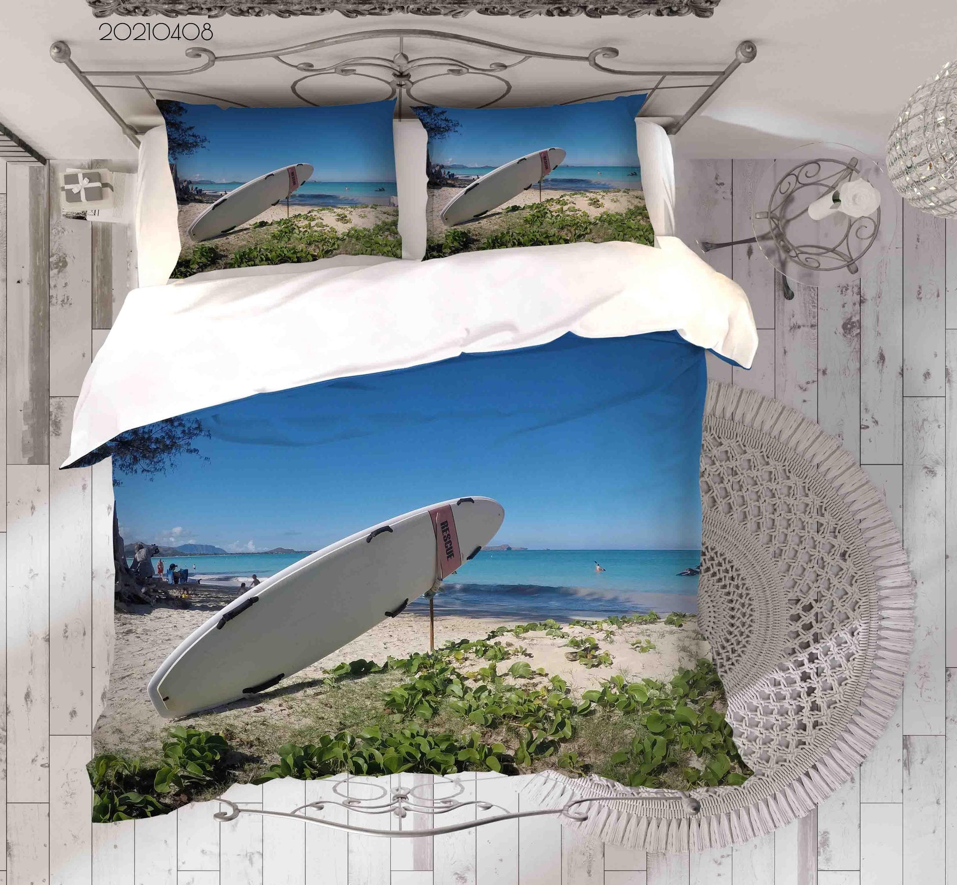 3D Blue Beach Surfboard Quilt Cover Set Bedding Set Duvet Cover Pillowcases 65
