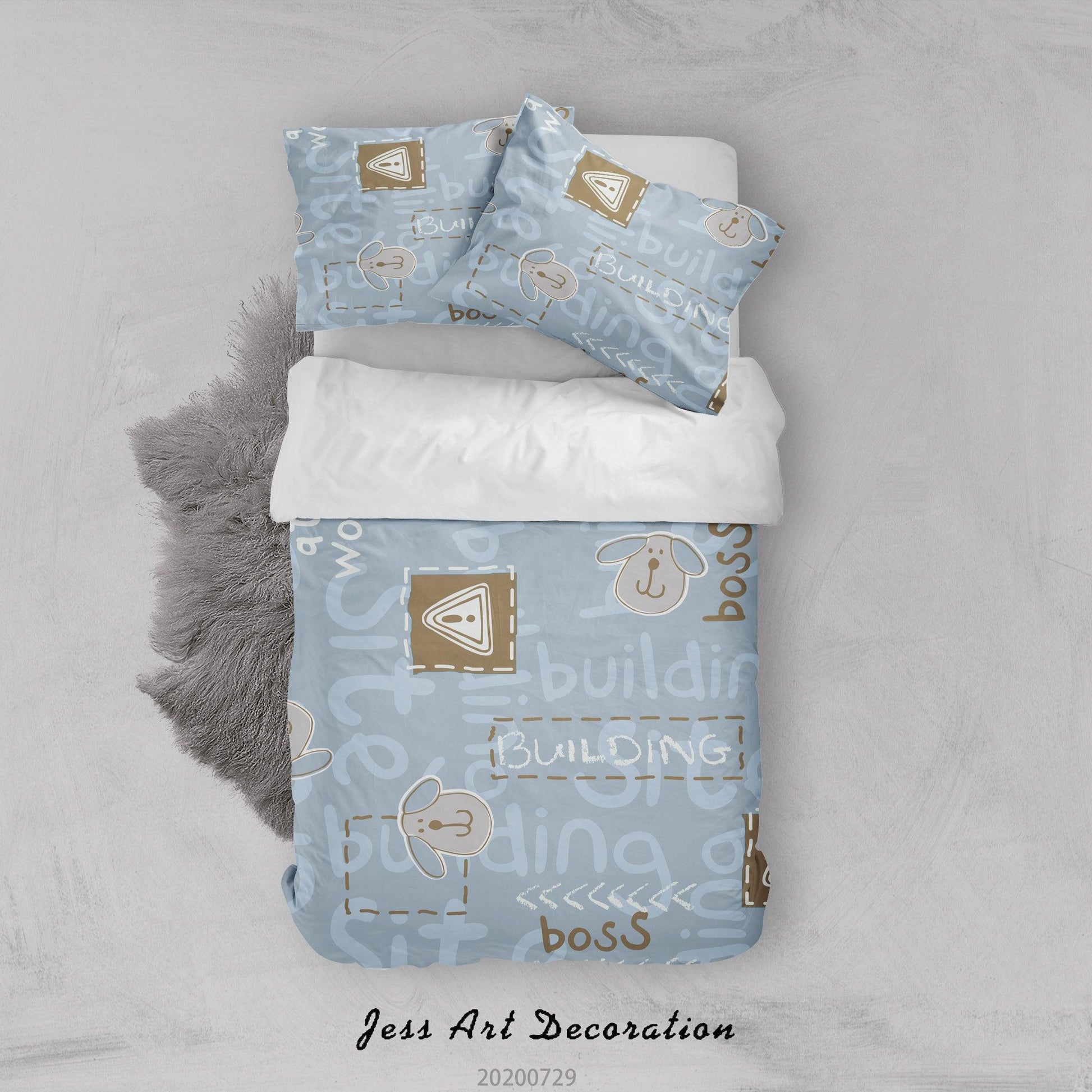 3D Blue Building Dog Quilt Cover Set Bedding Set Duvet Cover Pillowcases LXL 100