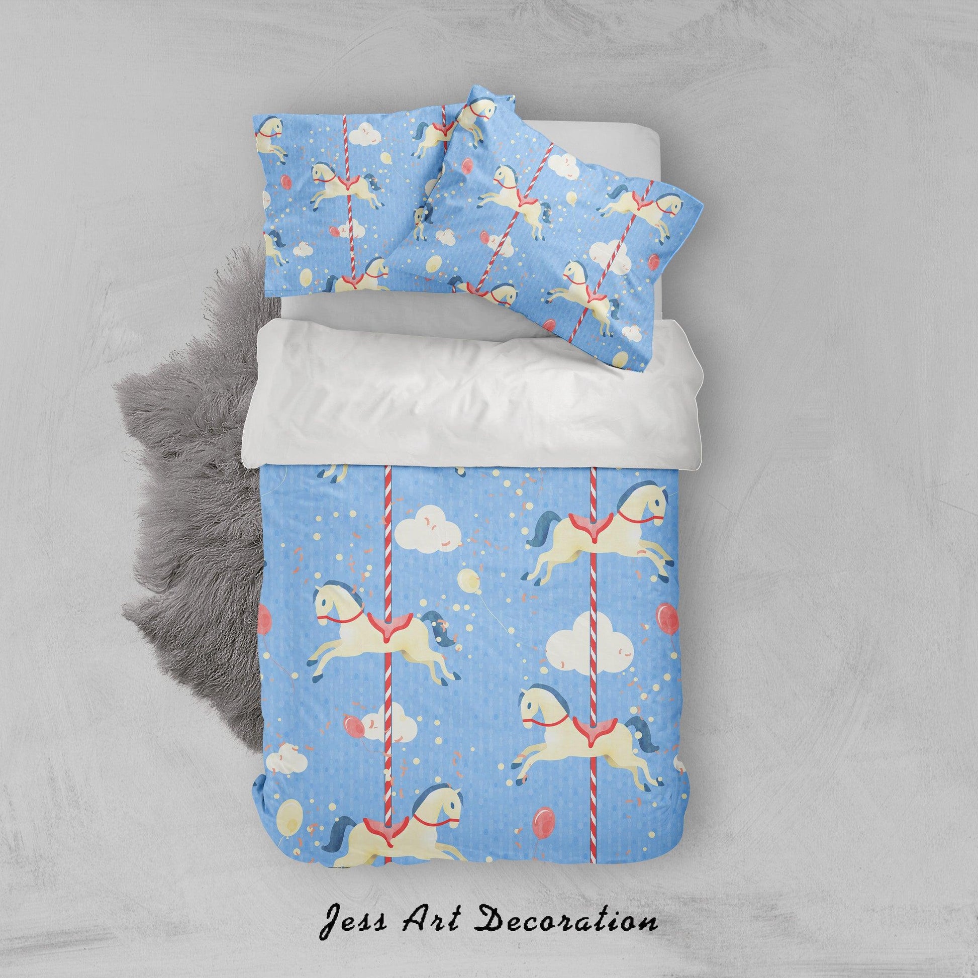 3D Blue Carousel Balloon Clouds Quilt Cover Set Bedding Set Pillowcases 58