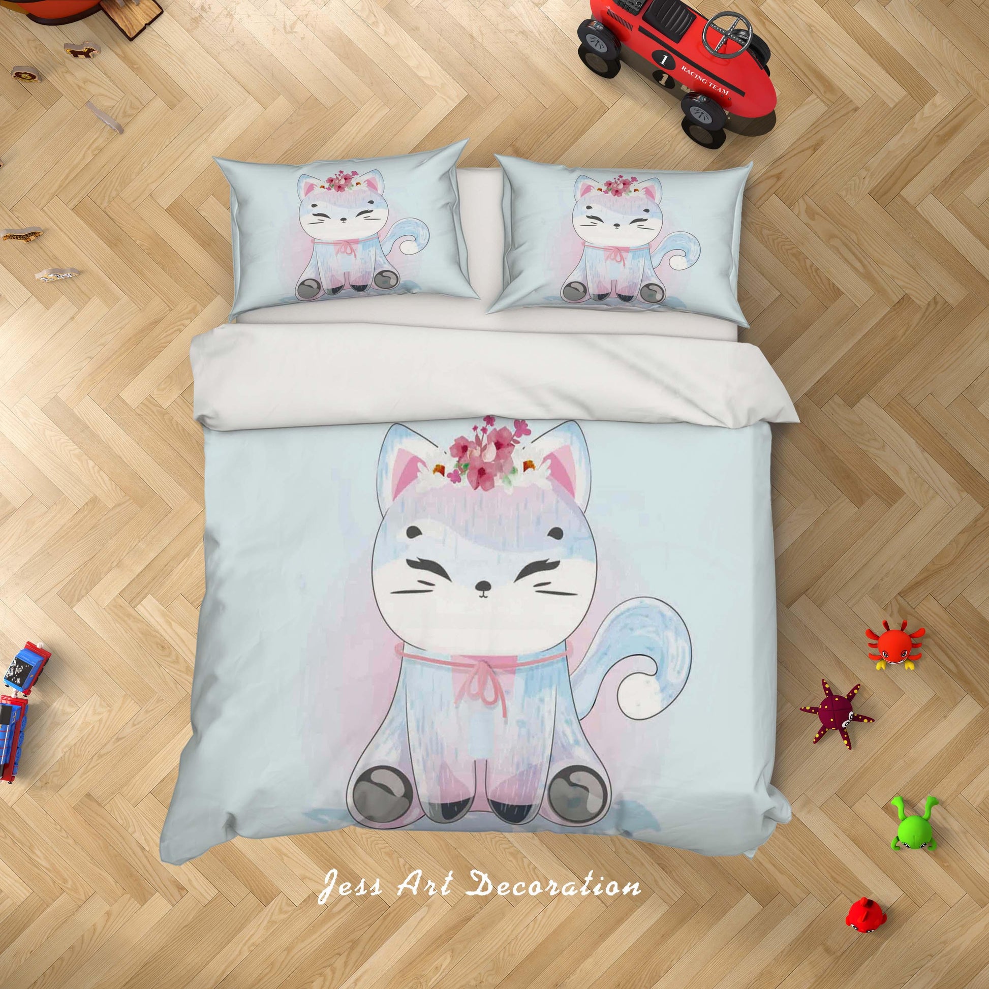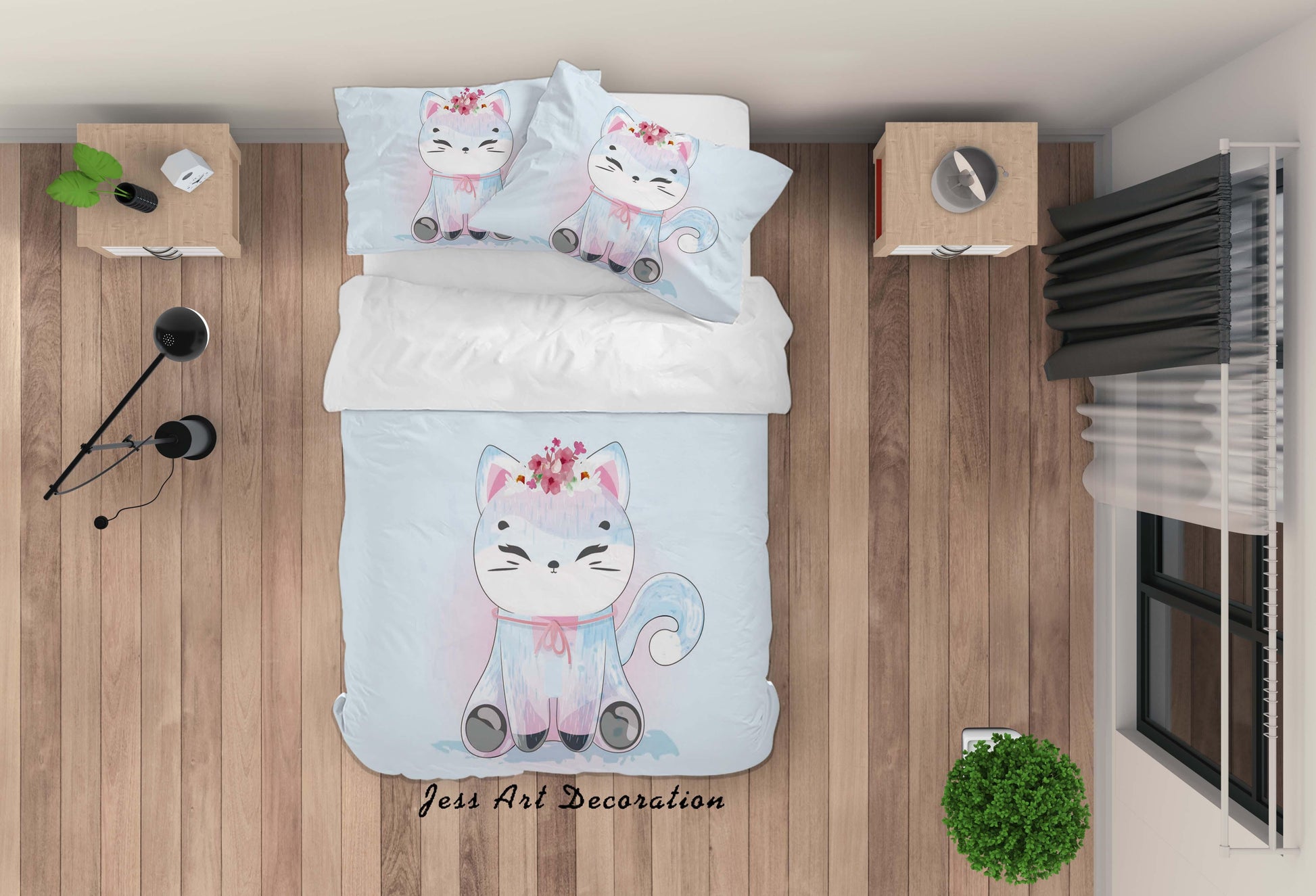 3D Blue Cartoon Cat Kitty Animal Quilt Cover Set Bedding Set Duvet Cover Pillowcases SF73
