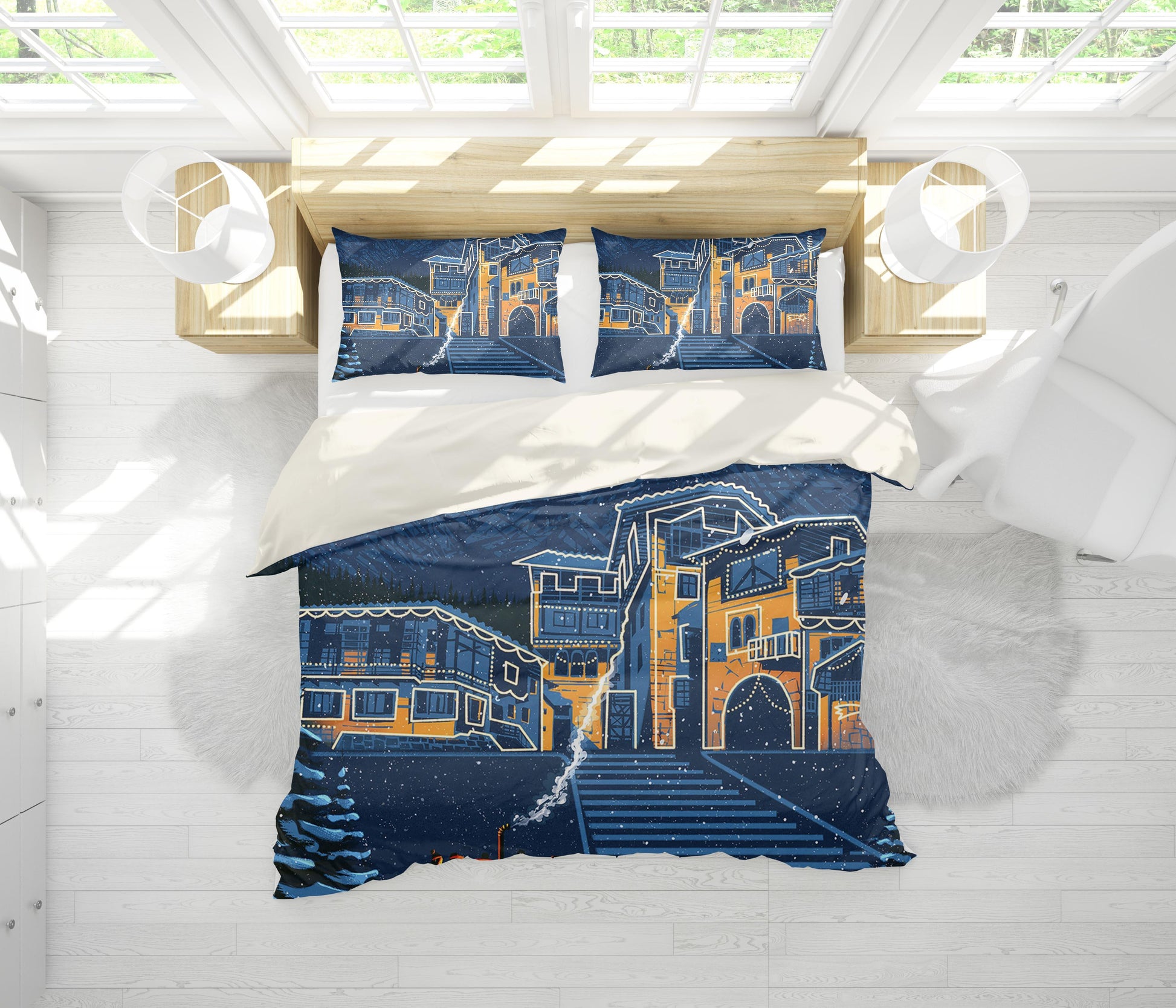 3D Blue Cartoon City Quilt Cover Set Bedding Set Pillowcases 176