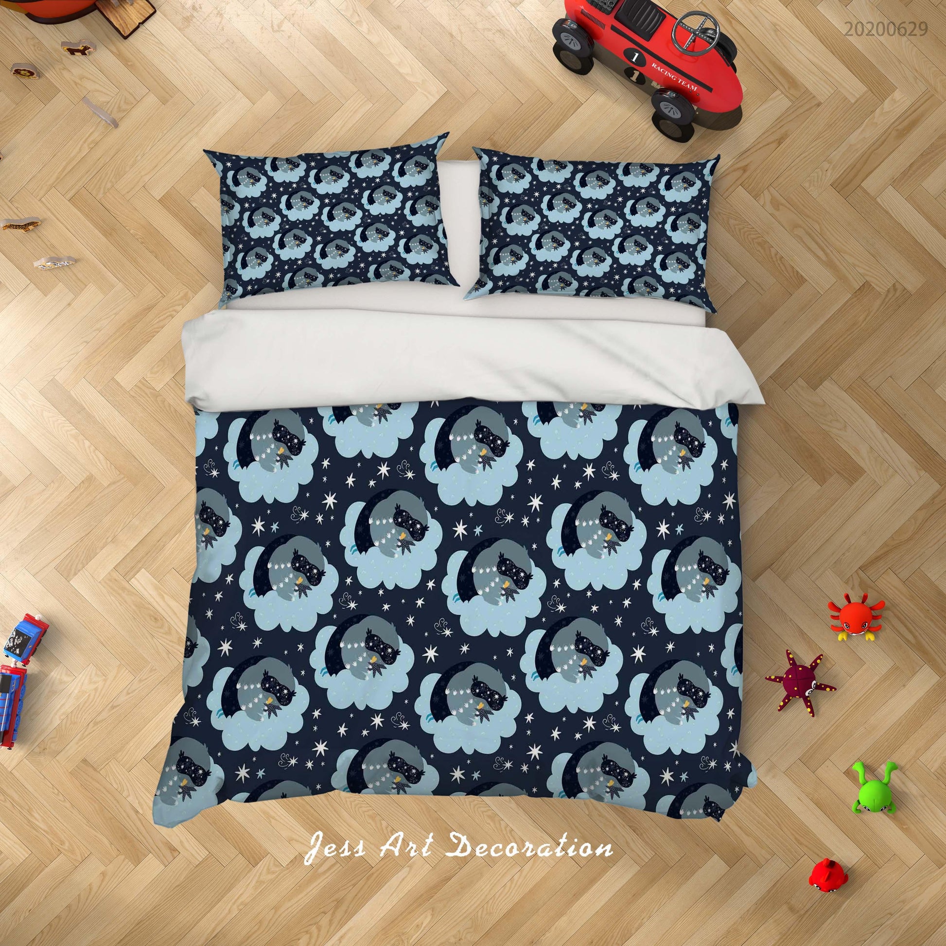 3D Blue Cartoon Star Night Sleep Quilt Cover Set Bedding Set Duvet Cover Pillowcases SF37