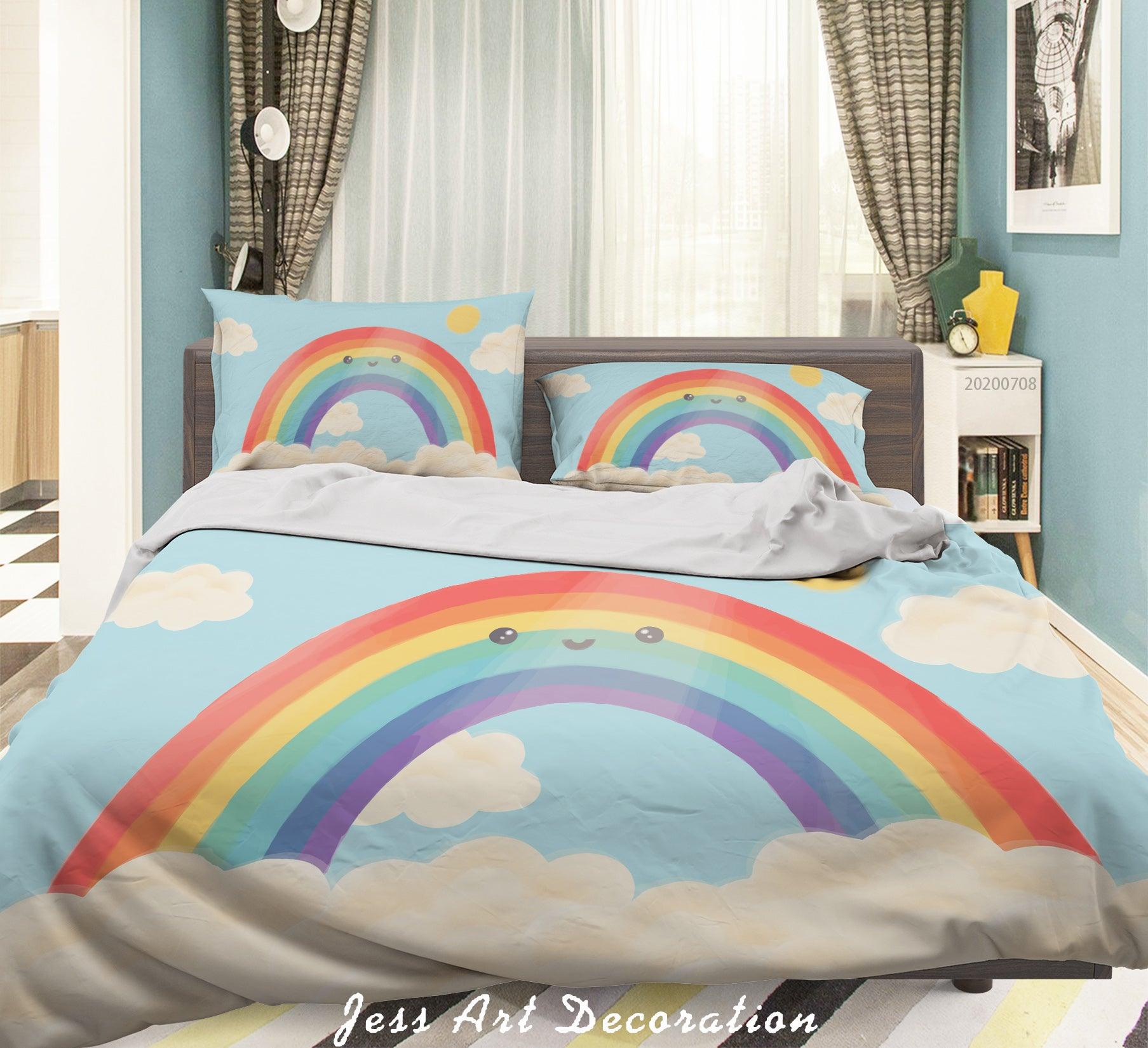 3D Blue Clouds Rainbow Quilt Cover Set Bedding Set Duvet Cover Pillowcases SF26