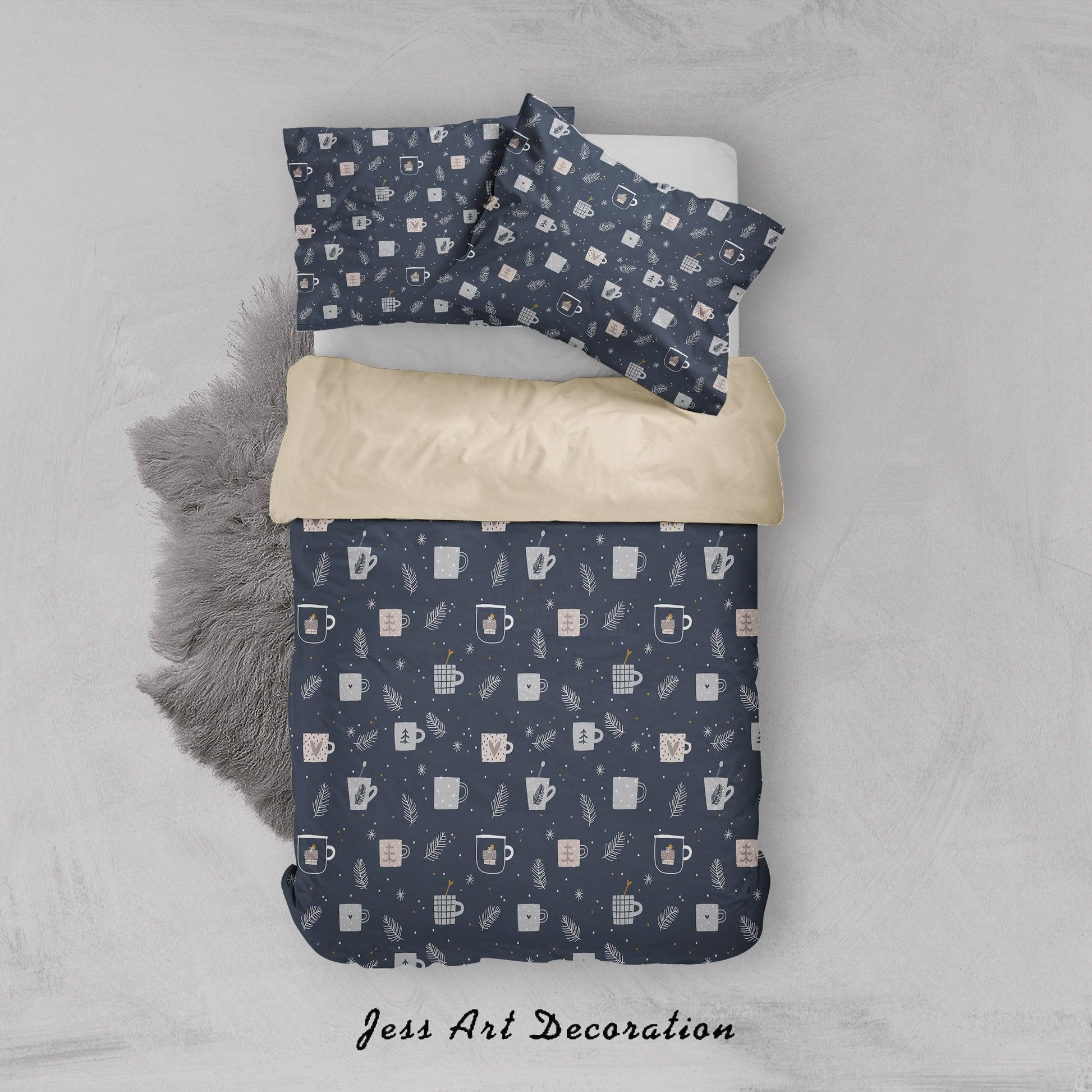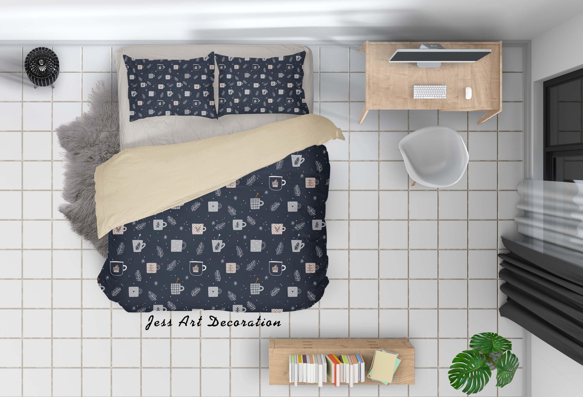 3D Blue Cups Floral Leaves Quilt Cover Set Bedding Set Duvet Cover Pillowcases SF58