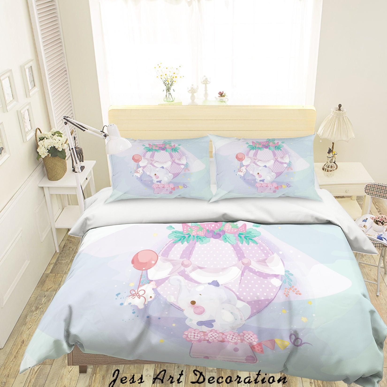 3D Blue Elephant Rabbit Quilt Cover Set Bedding Set Duvet Cover Pillowcases SF