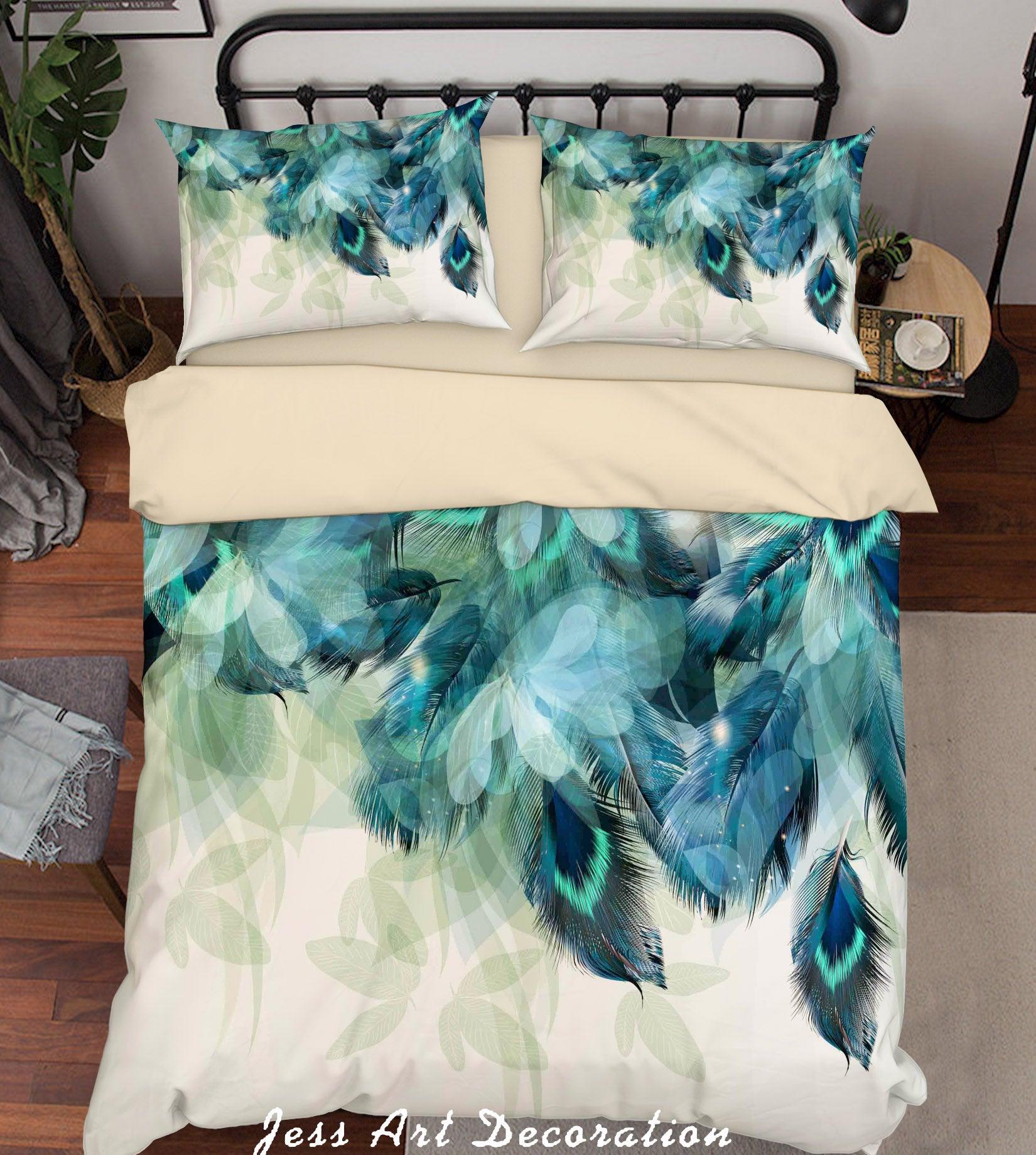 3D Blue Feather Quilt Cover Set Bedding Set Duvet Cover Pillowcases SF87
