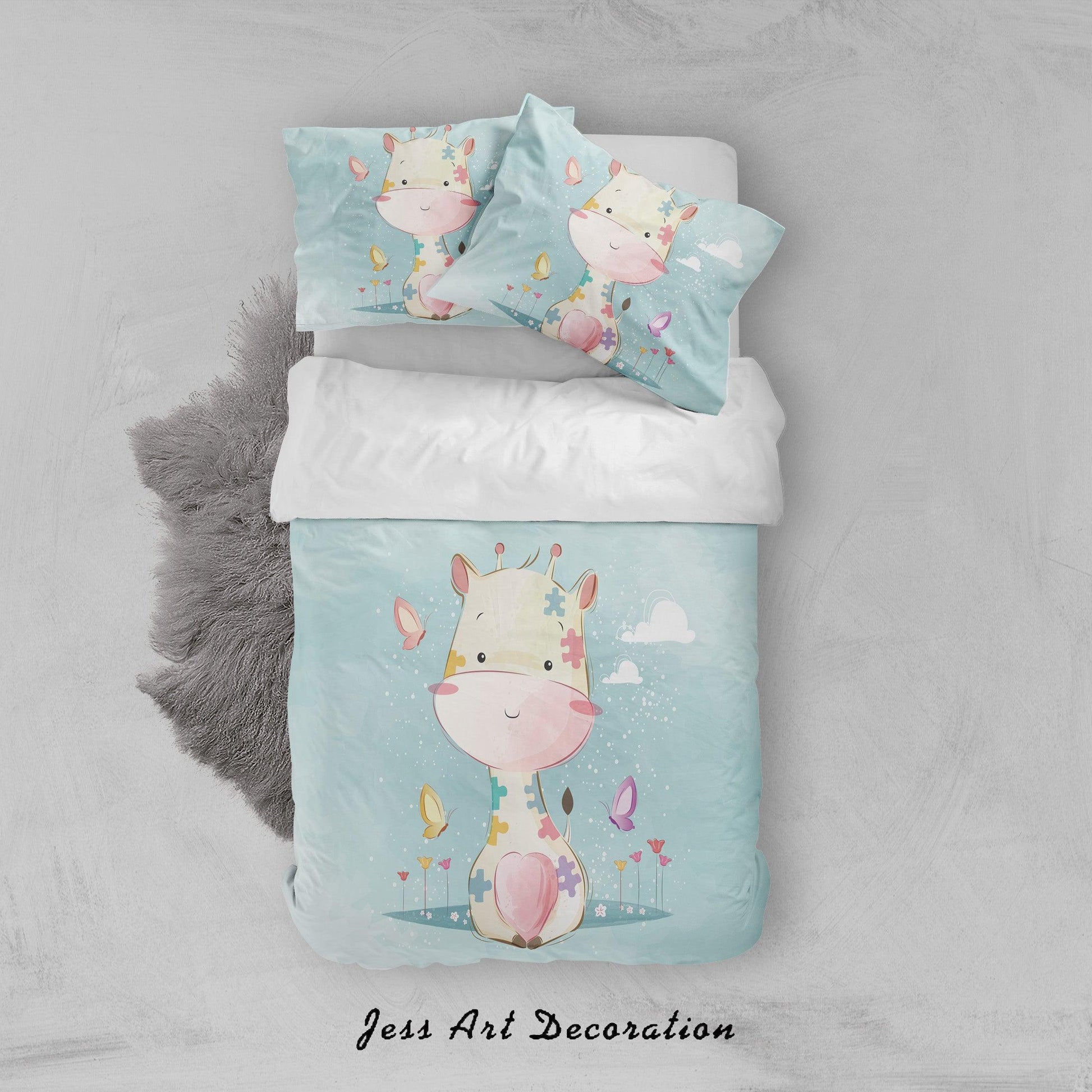 3D Blue Giraffe Quilt Cover Set Bedding Set Duvet Cover Pillowcases SF9