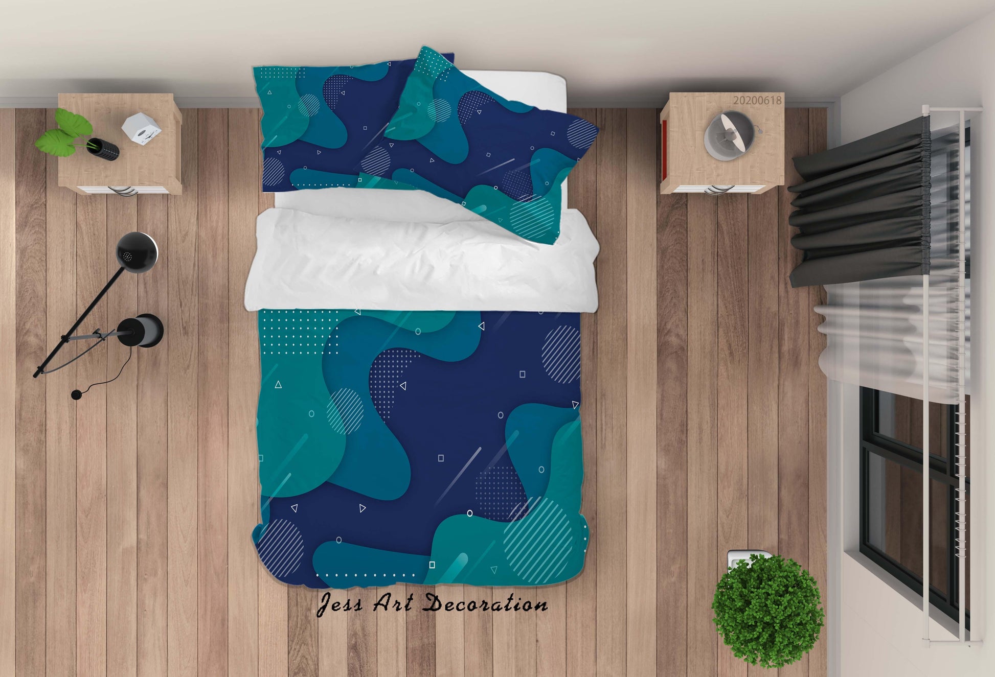 3D Blue Green Geometric Patterns Quilt Cover Set Bedding Set Duvet Cover Pillowcases SF22