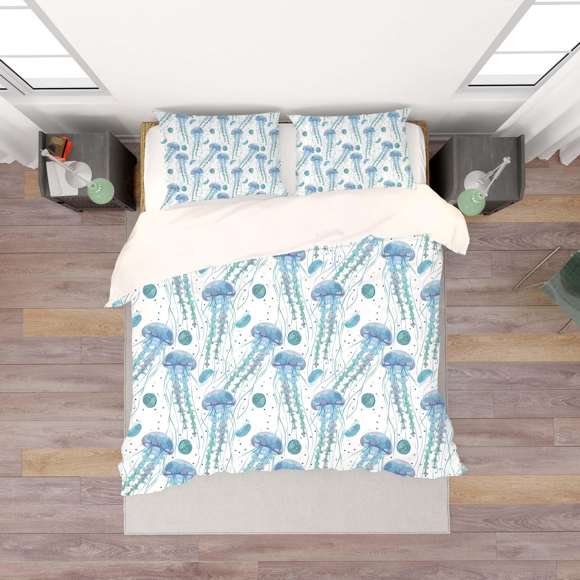 3D Blue Jellyfish Quilt Cover Set Bedding Set Pillowcases 115