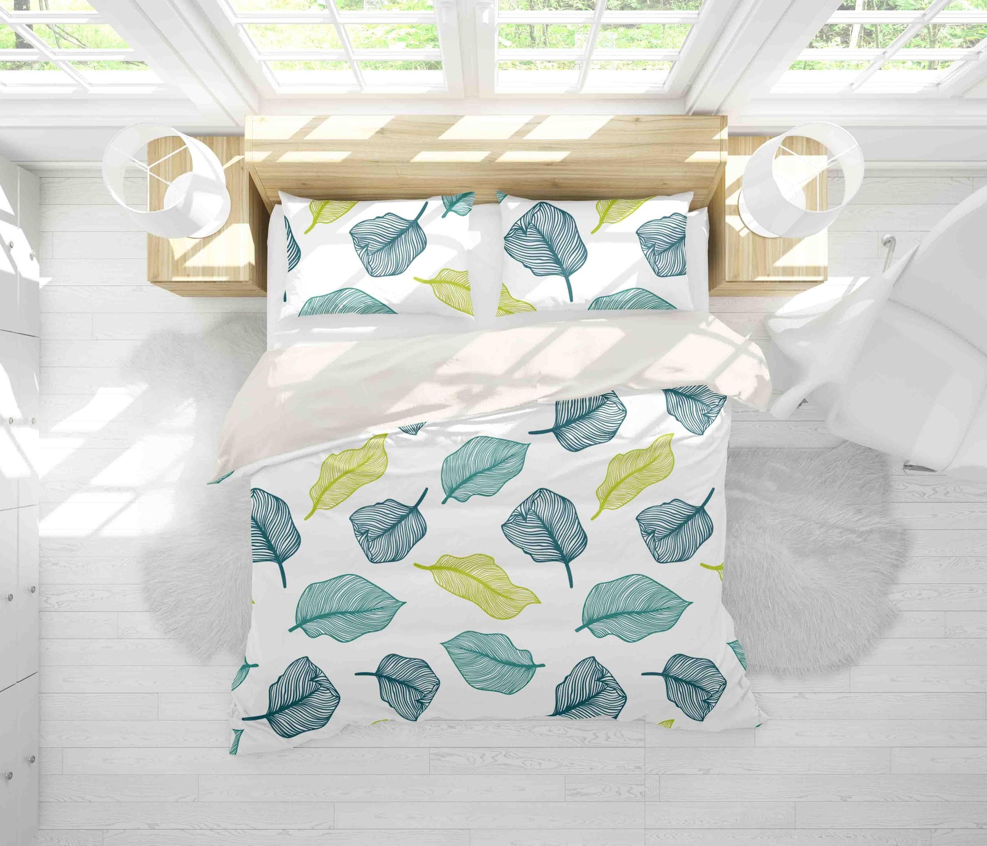 3D Blue Leaves Quilt Cover Set Bedding Set Pillowcases 33