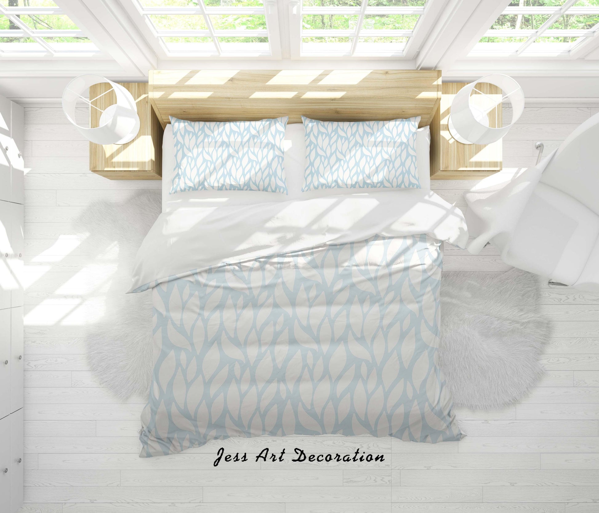 3D Blue Leaves Shape Quilt Cover Set Bedding Set Duvet Cover Pillowcases SF40