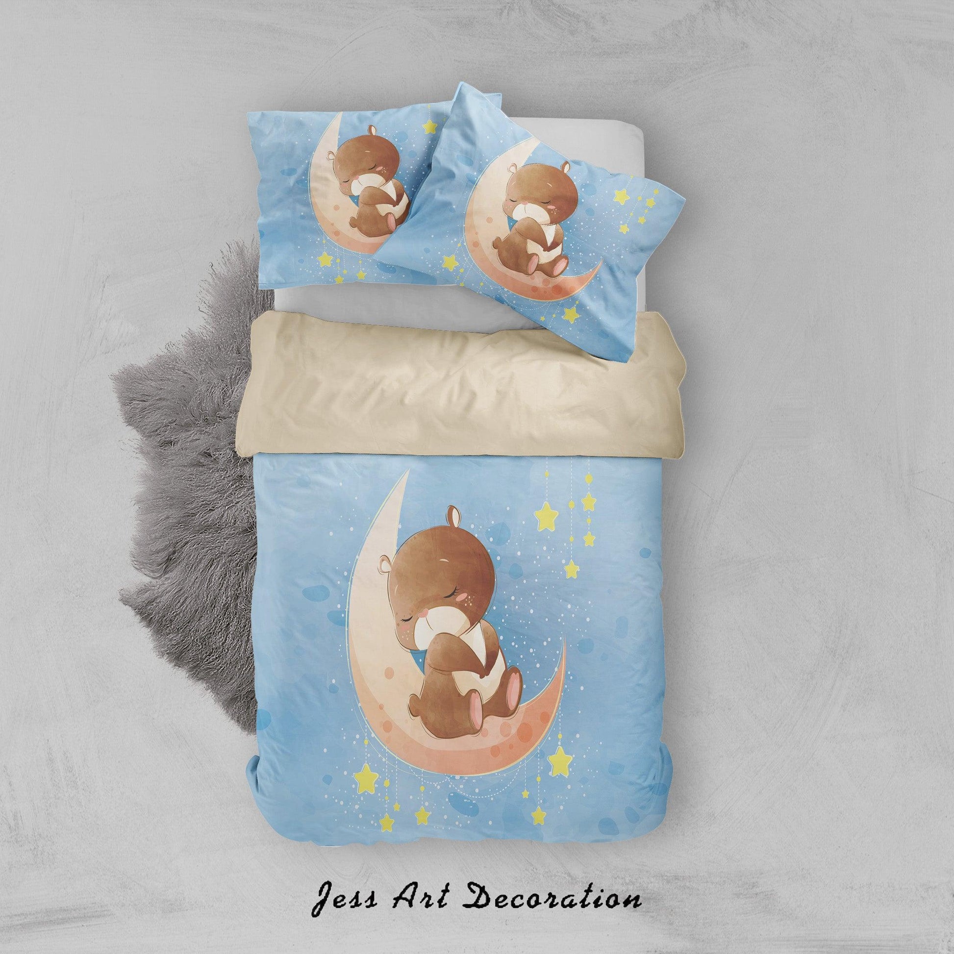 3D Blue Moon Star Bear Quilt Cover Set Bedding Set Duvet Cover Pillowcases SF90