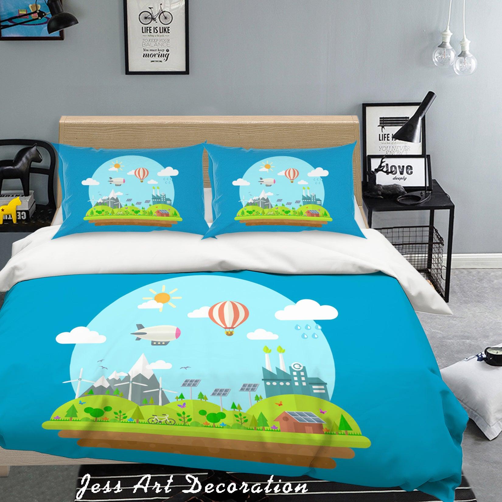 3D Blue Mountains Trees House Bike Aircraft Solar Energy Quilt Cover Set Bedding Set Pillowcases 76