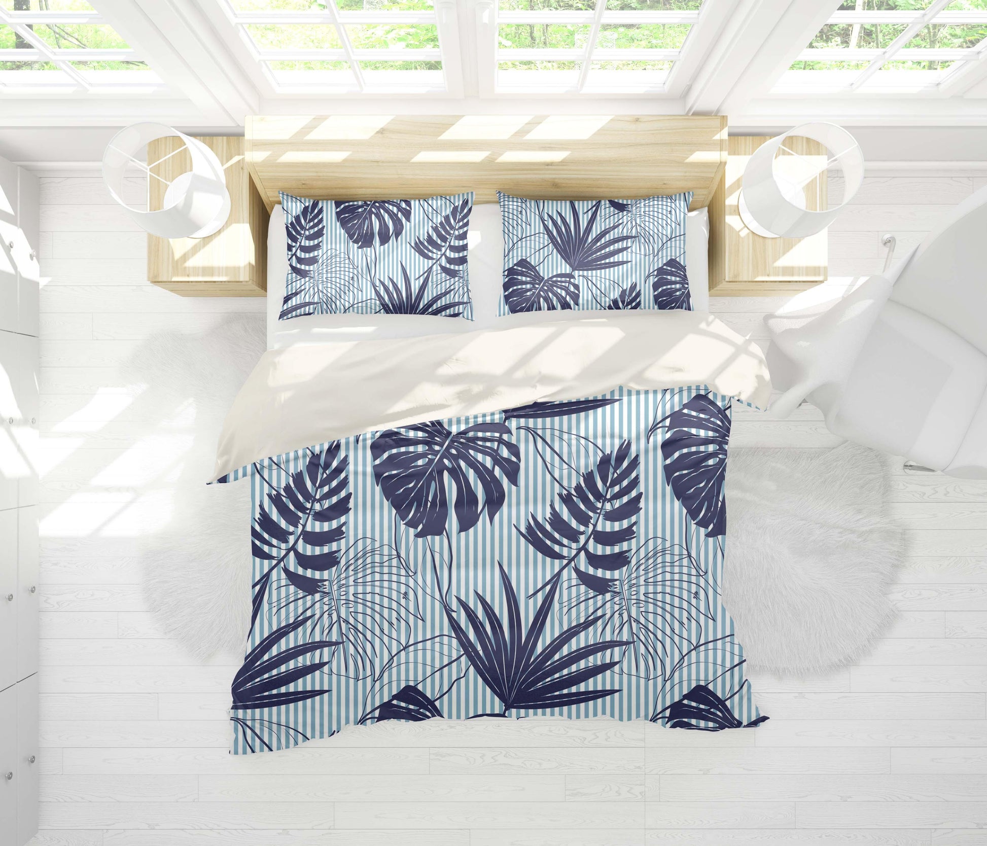3D Blue Palm Leaves Quilt Cover Set Bedding Set Pillowcases 20