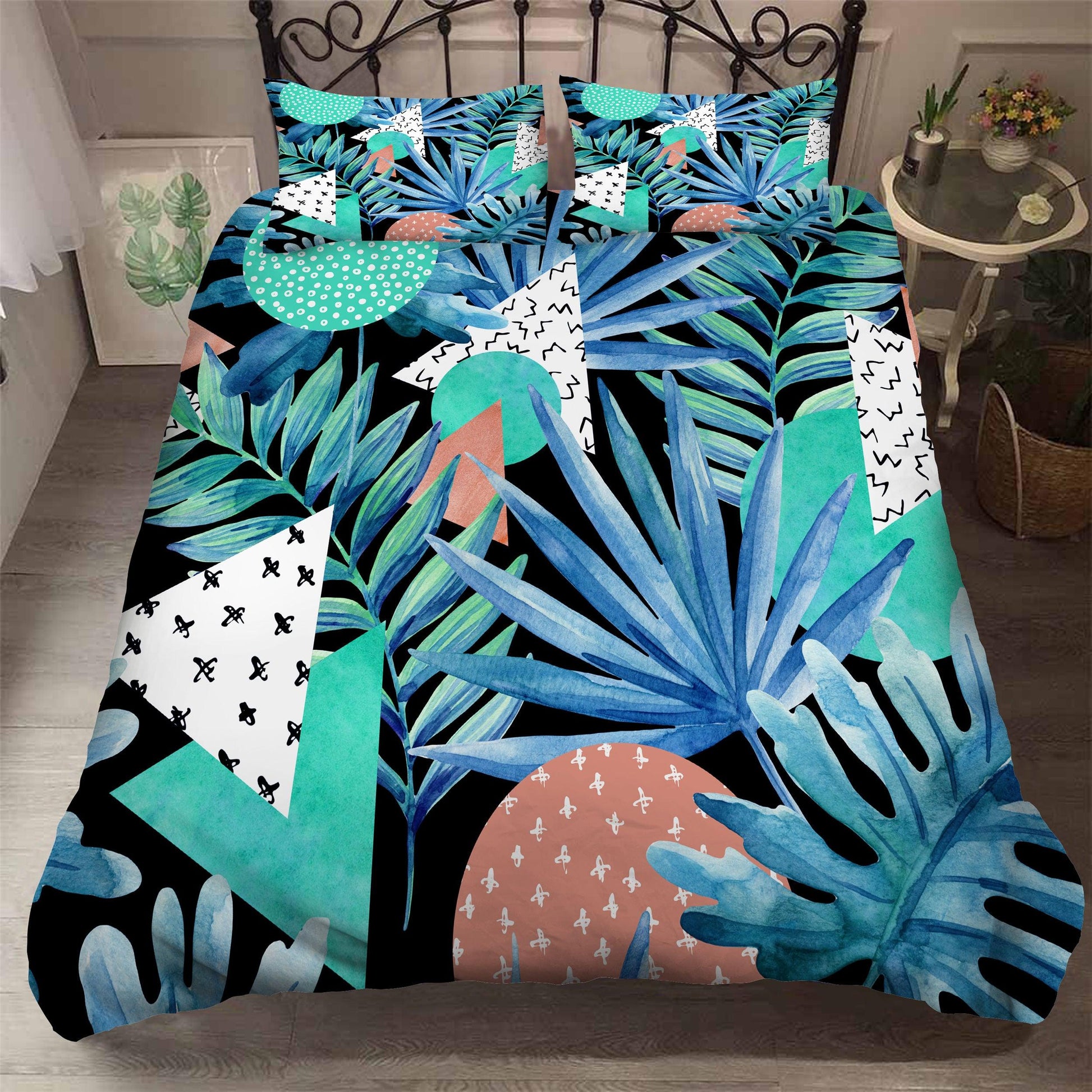 3D Blue Palm Leaves Triangle Quilt Cover Set Bedding Set Pillowcases 10