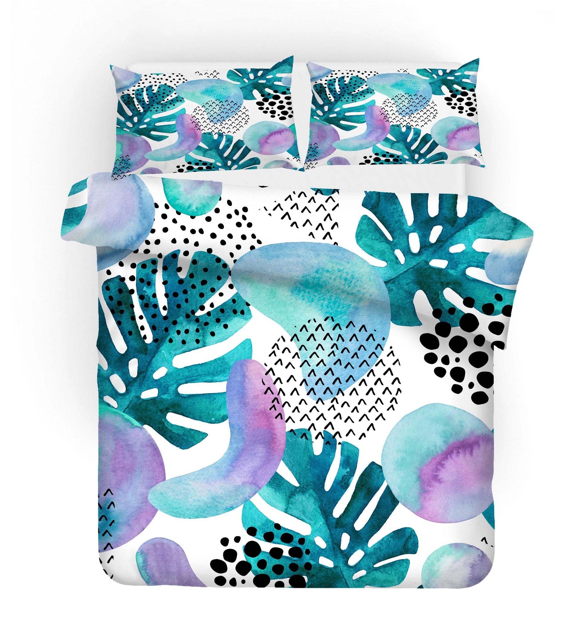 3D Blue Palm Leaves Triangle Quilt Cover Set Bedding Set Pillowcases 109