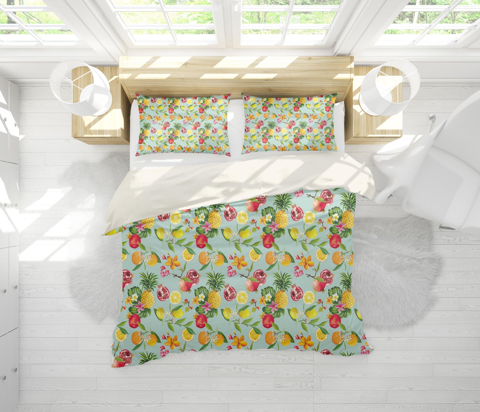 3D Blue Pineapple Pomegranate Lemon Orange Floral Leaves Quilt Cover Set Bedding Set Pillowcases 128