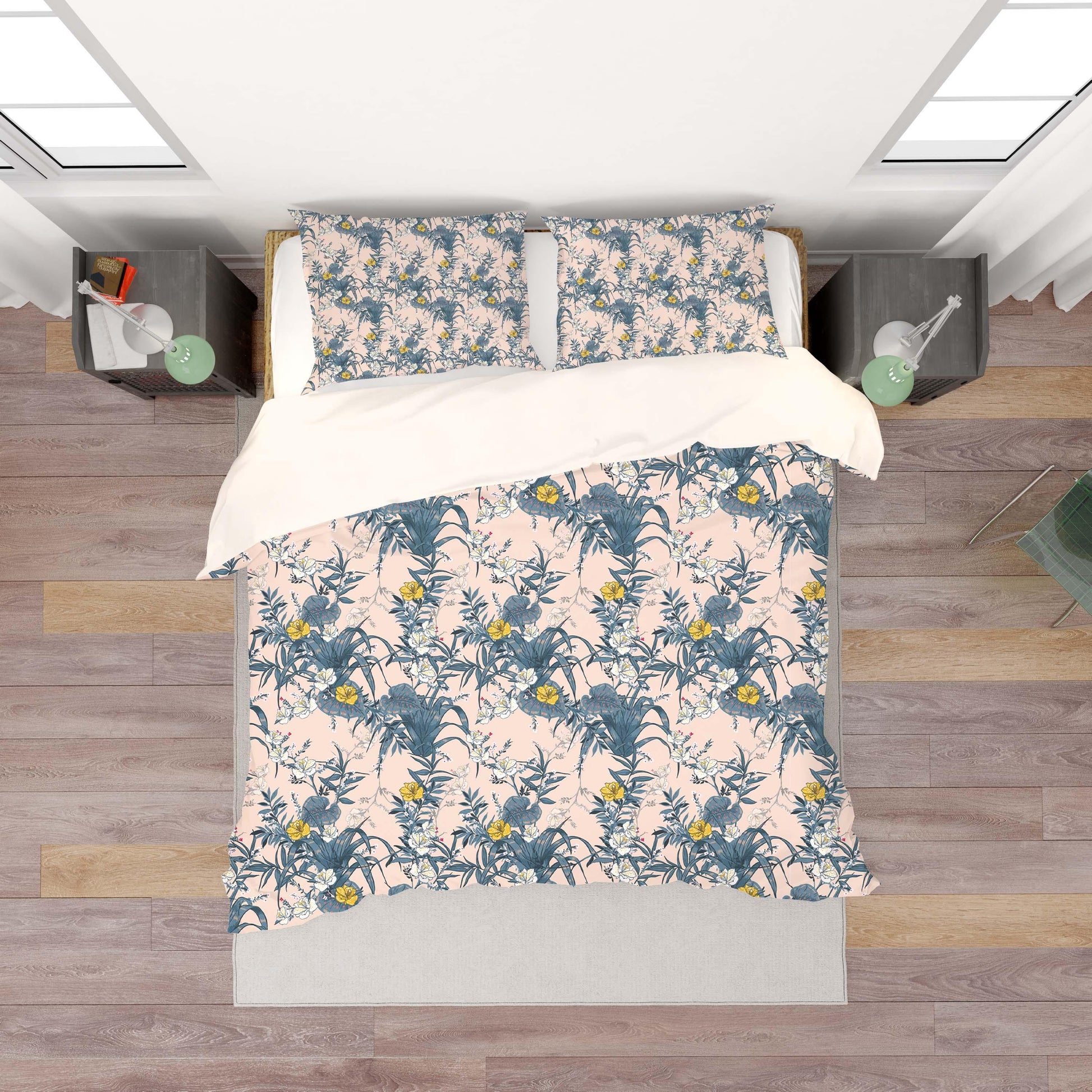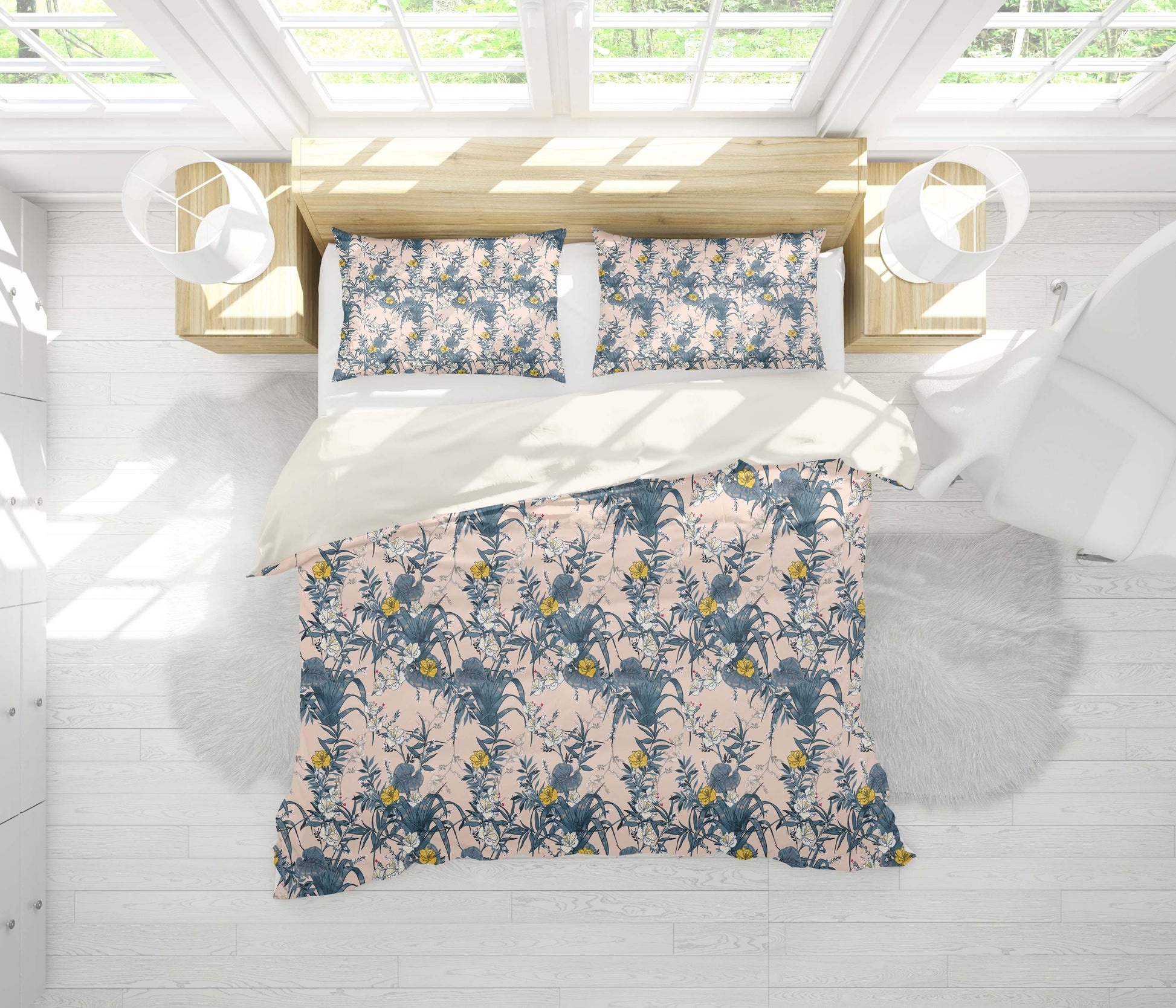 3D Blue Pink Floral Leaves Quilt Cover Set Bedding Set Pillowcases 149