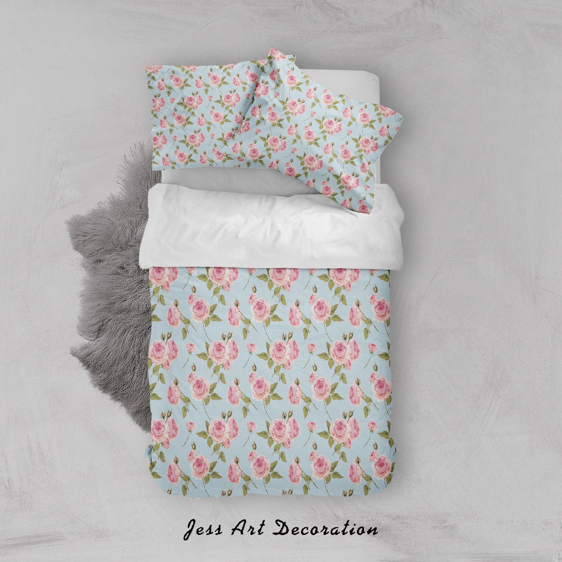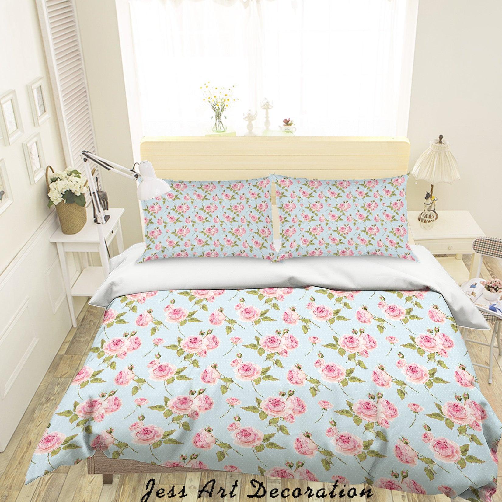 3D Blue Pink Floral Quilt Cover Set Bedding Set Duvet Cover Pillowcases SF24