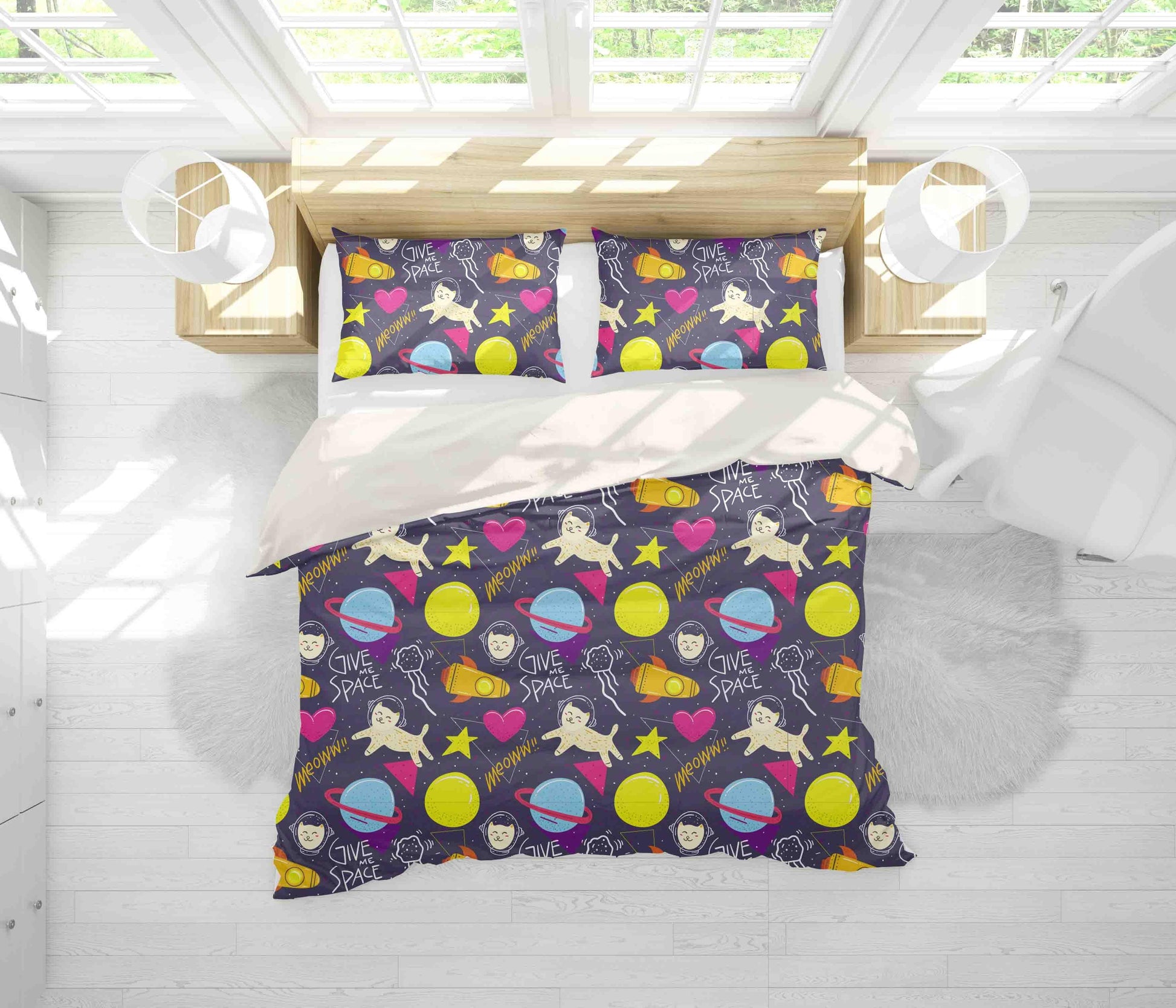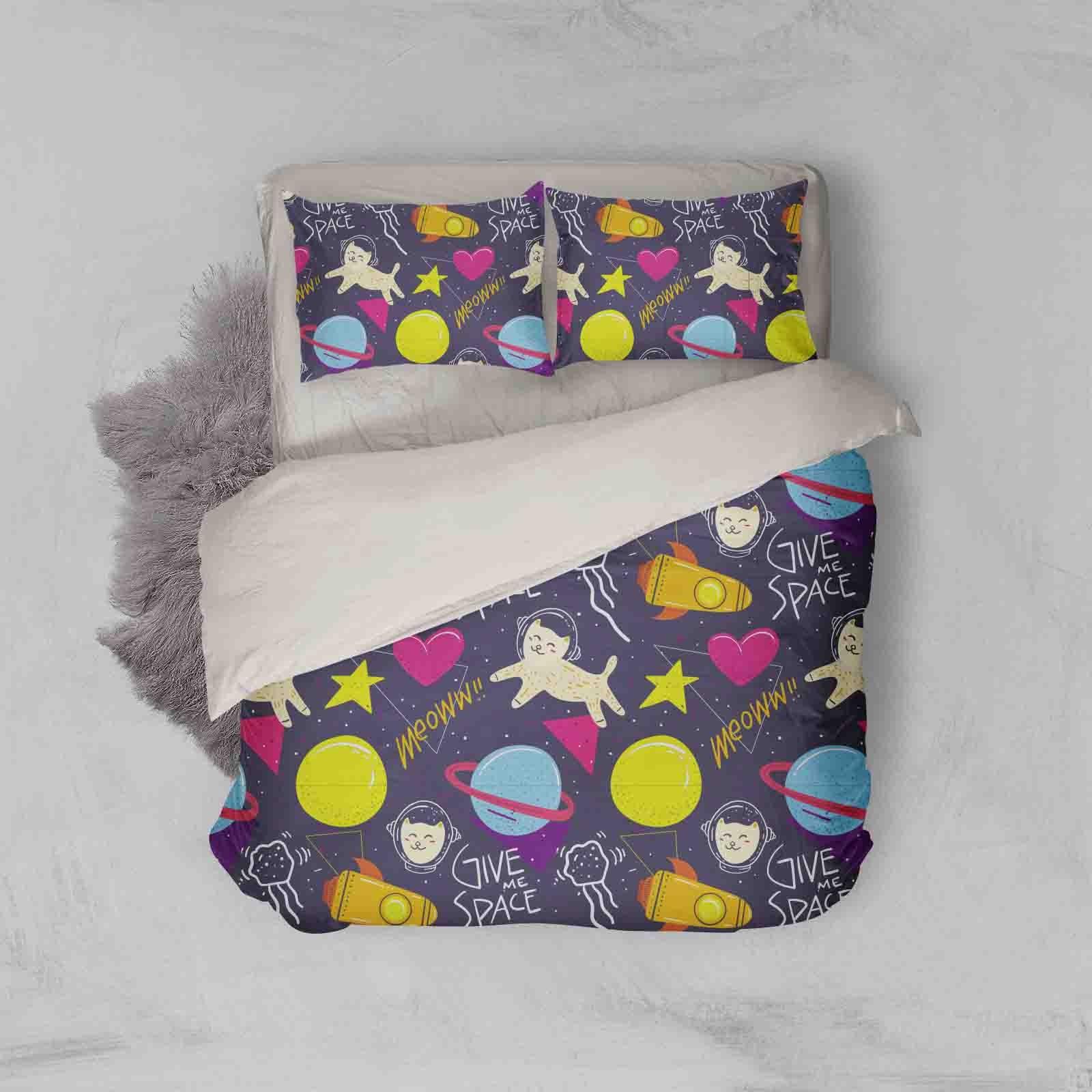 3D Blue Planet Cat Star Heart Triangle Quilt Cover Set Bedding Set Pillowcases 13