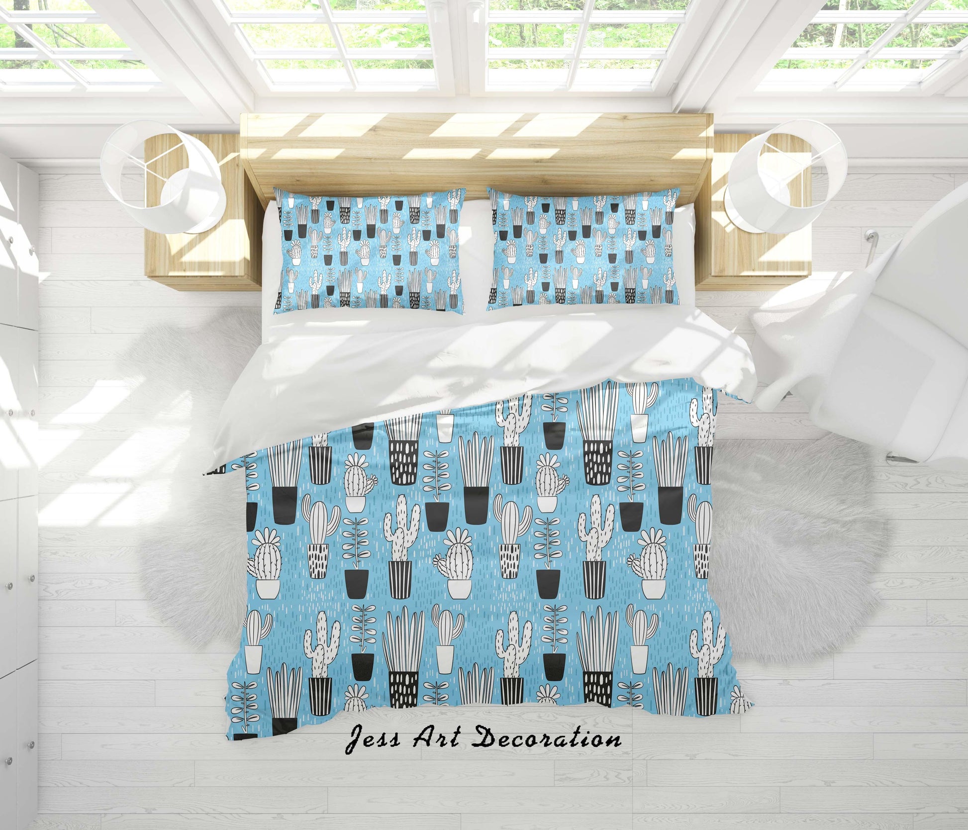 3D Blue Potted Plants Cactus Quilt Cover Set Bedding Set Duvet Cover Pillowcases SF98