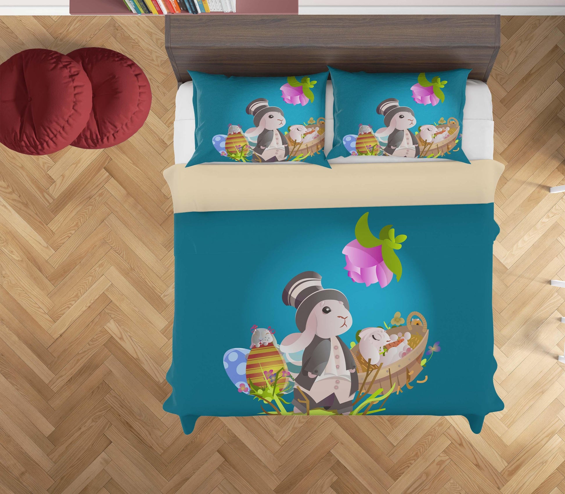 3D Blue Rabbit Basket Eggs Floral Quilt Cover Set Bedding Set Duvet Cover Pillowcases SF15