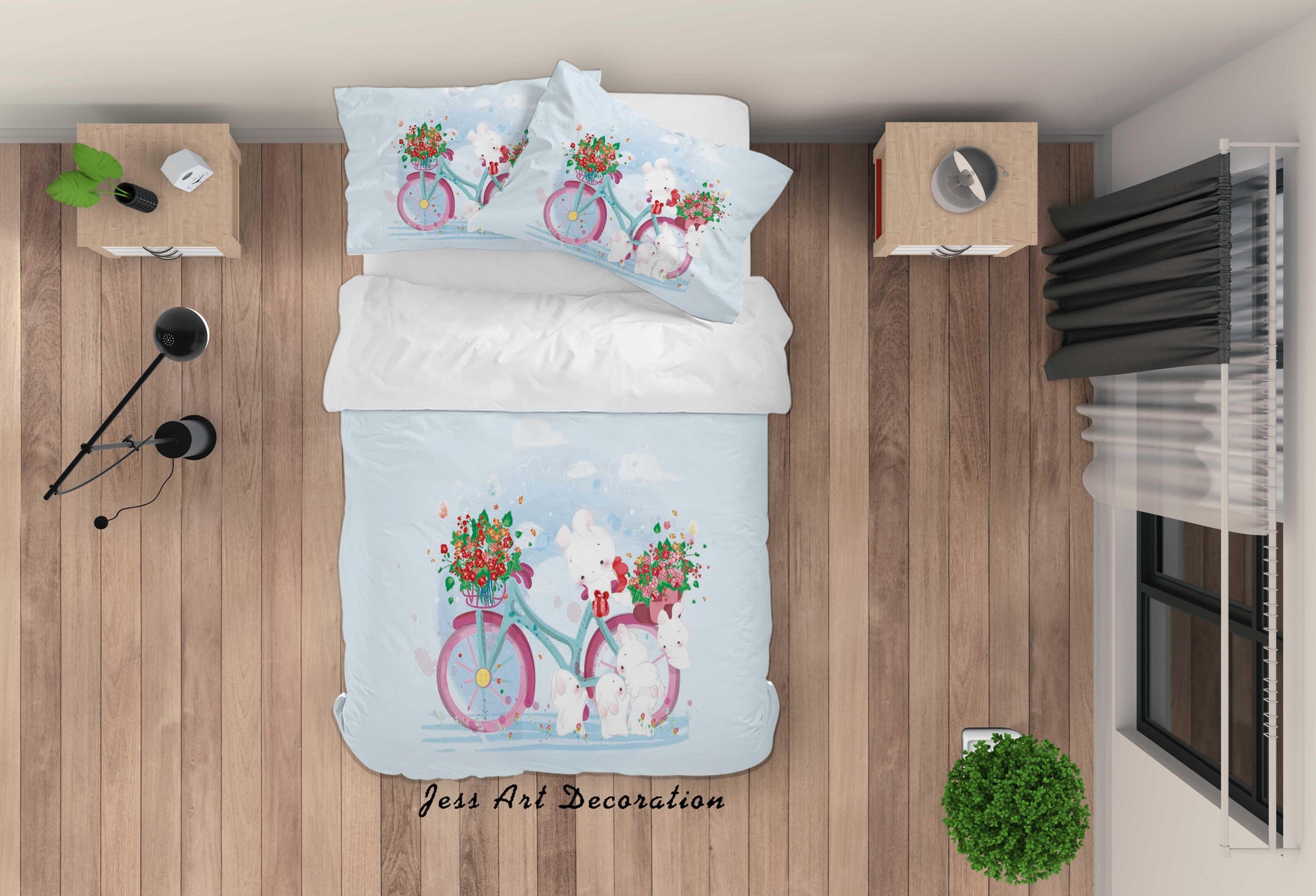 3D Blue Rabbit Floral Bicycle Quilt Cover Set Bedding Set Duvet Cover Pillowcases SF99