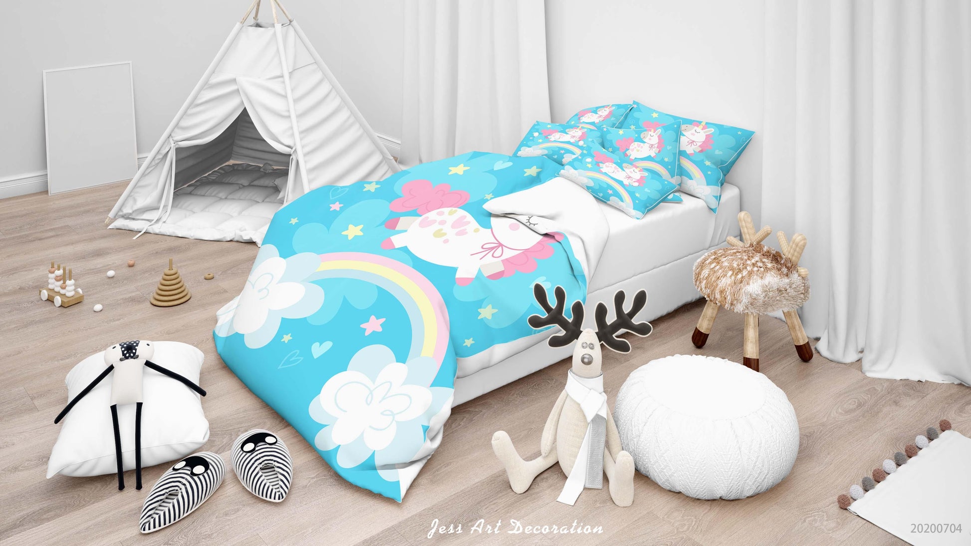 3D Blue Rainbow Unicorn Quilt Cover Set Bedding Set Duvet Cover Pillowcases SF73