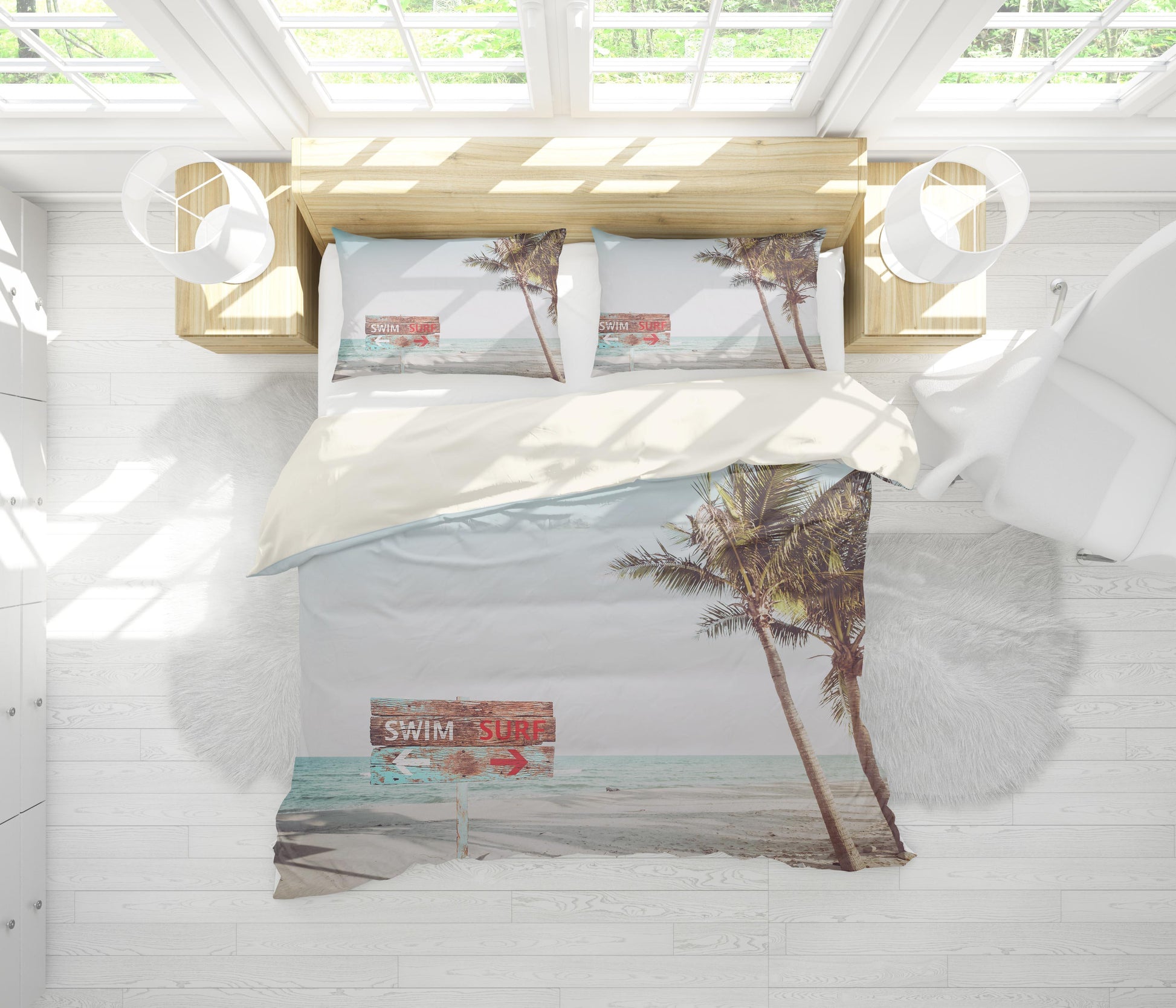 3D Blue Sea Beach Coconut Tree Quilt Cover Set Bedding Set Pillowcases 34