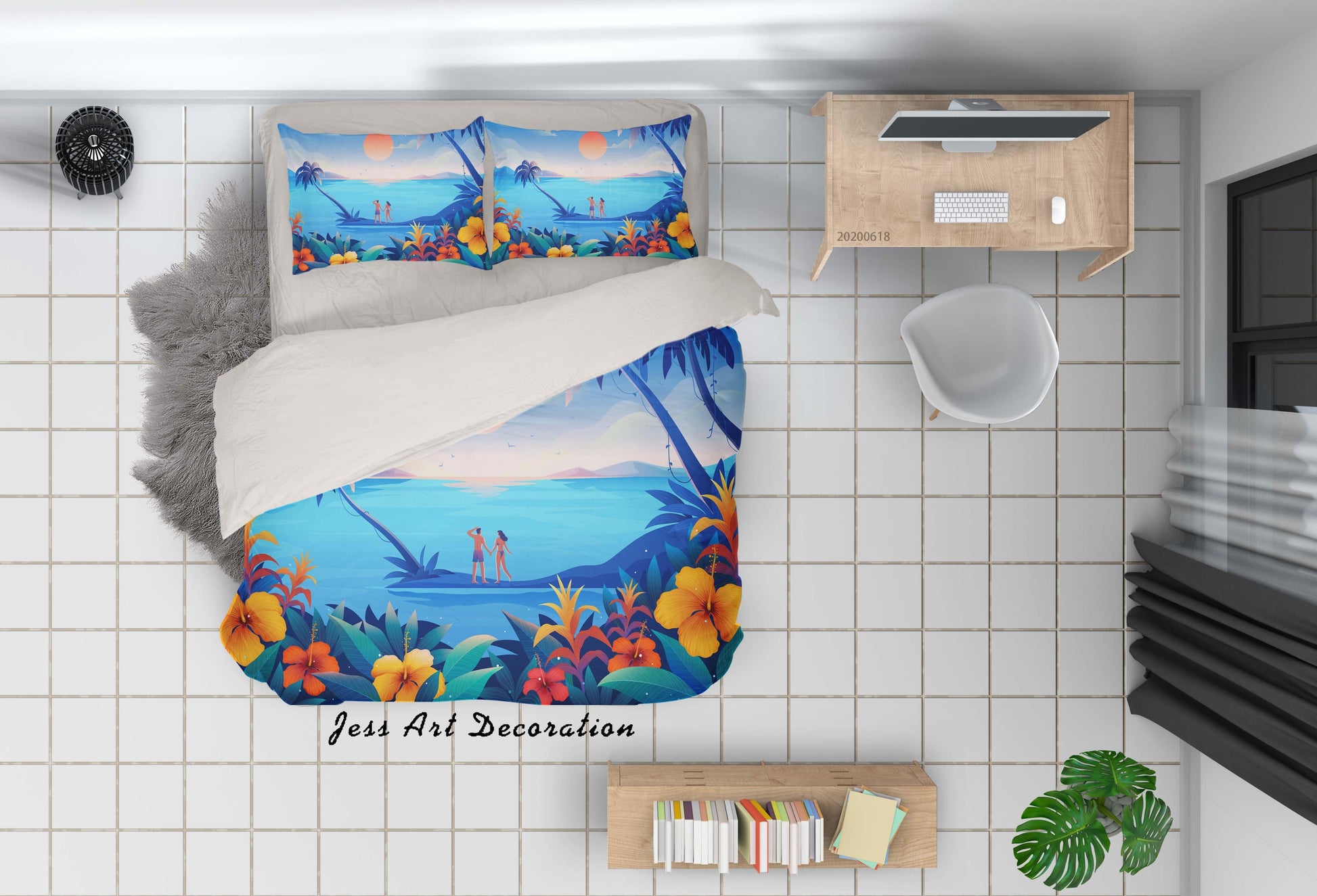 3D Blue Sea Floral Coconut Tree Quilt Cover Set Bedding Set Duvet Cover Pillowcases SF52