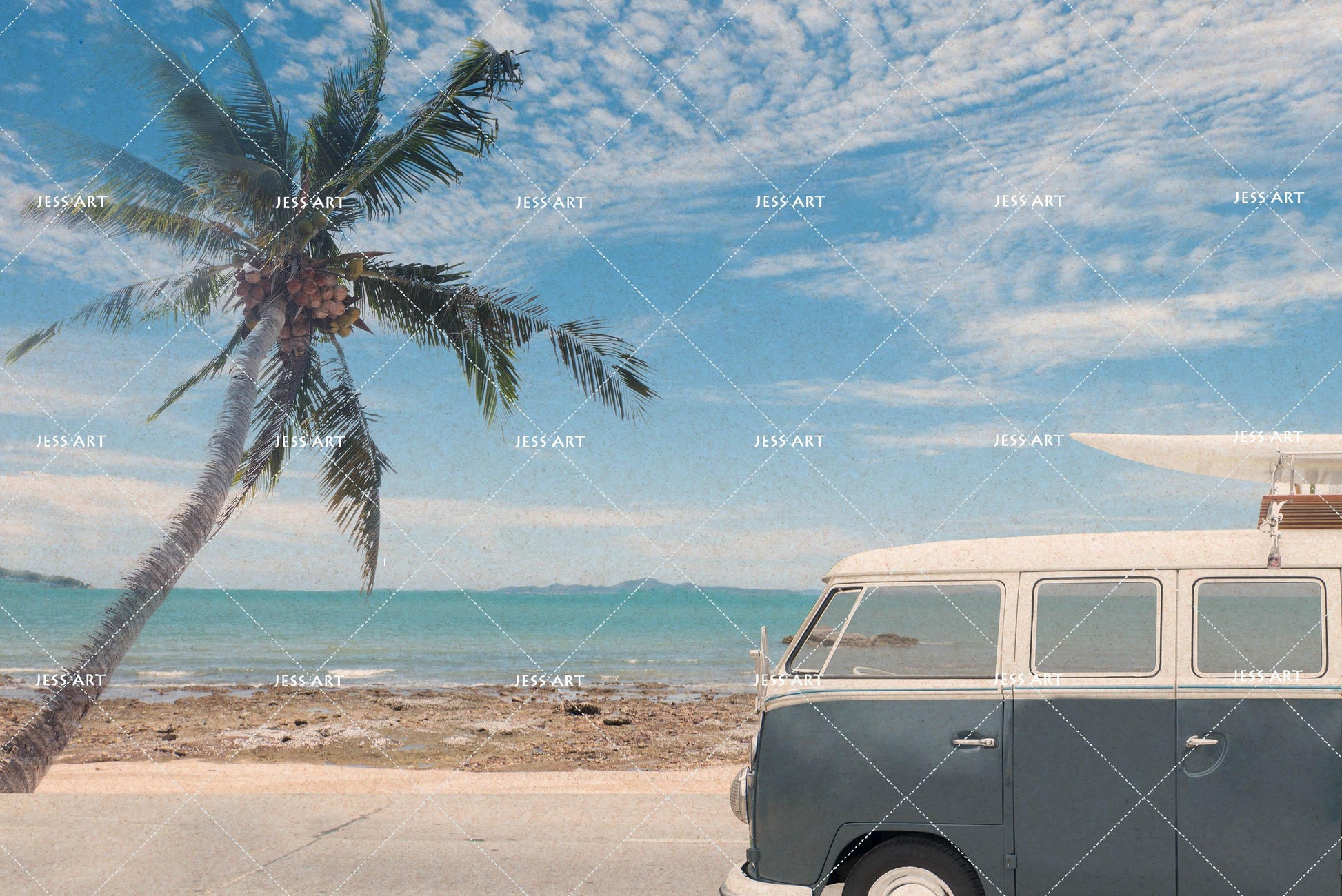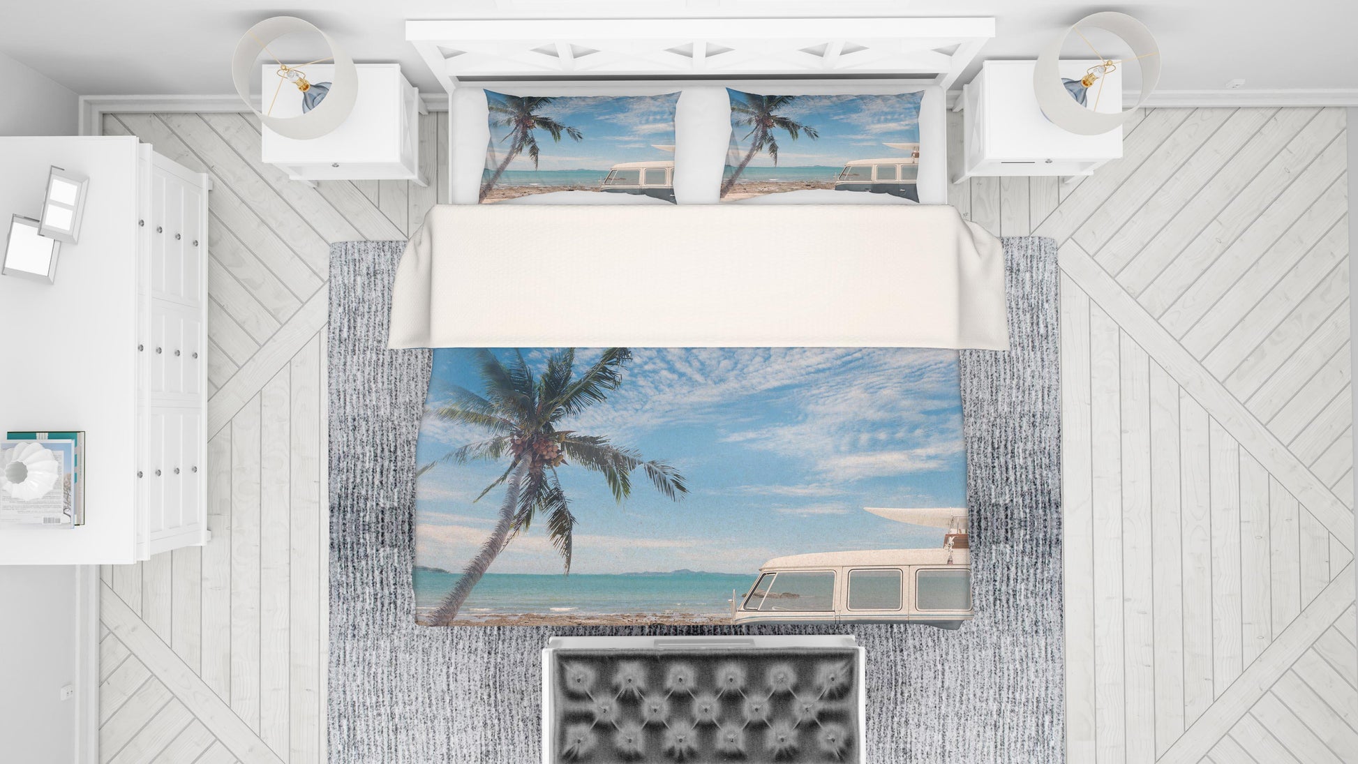 3D Blue Sea Minibus Coconut Tree Quilt Cover Set Bedding Set Pillowcases 14