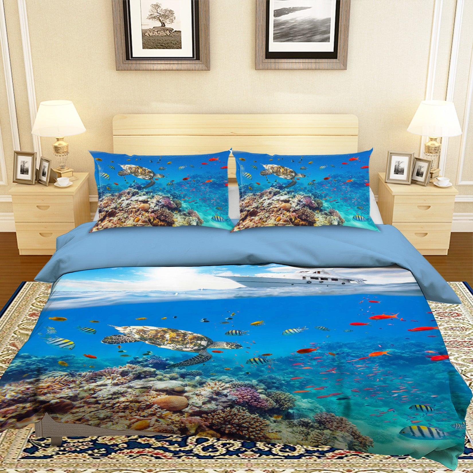3D Blue Sea Turtle Yacht Fish Coral Quilt Cover Set Bedding Set Pillowcases 09