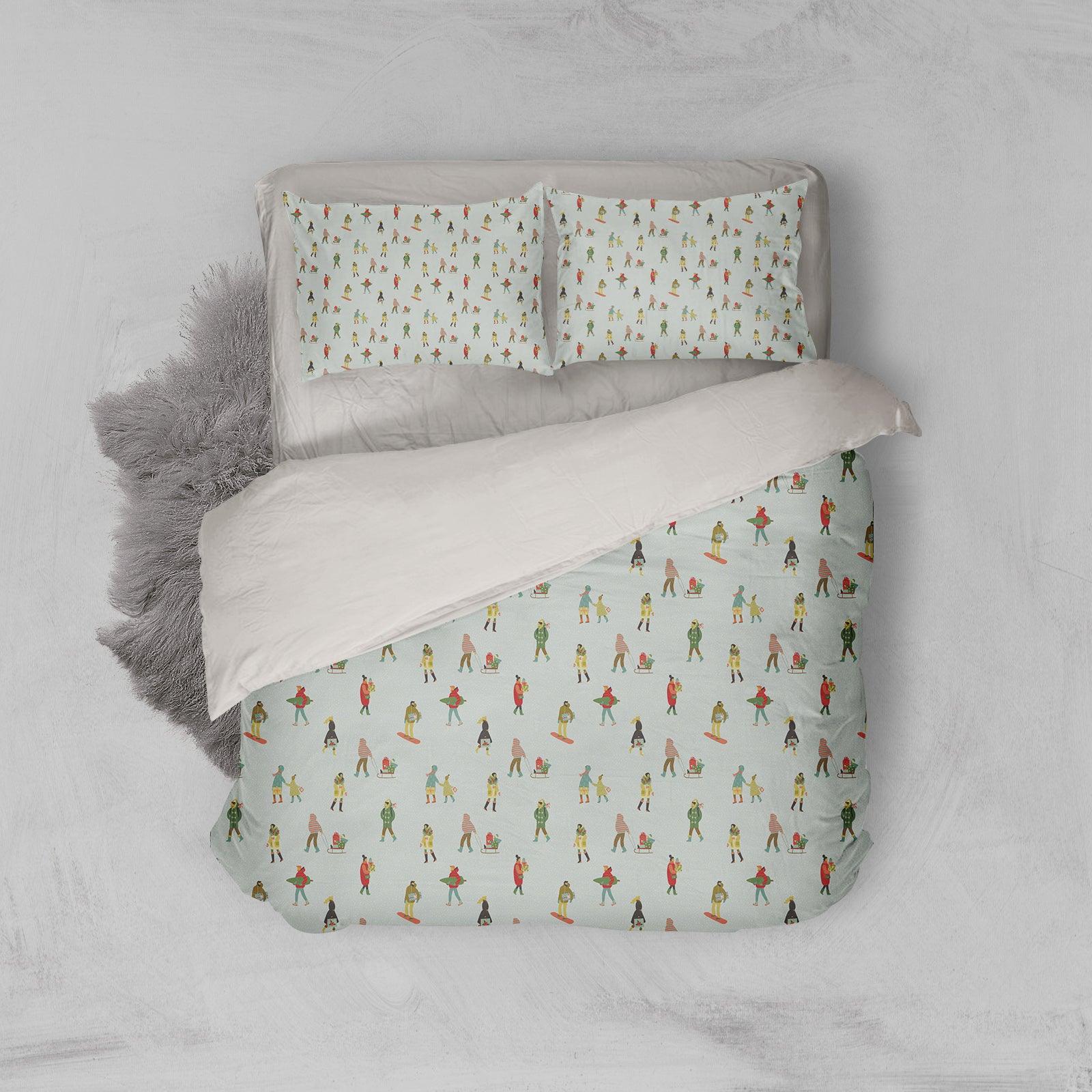 3D Blue Ski Skating Winter Quilt Cover Set Bedding Set Pillowcases 213