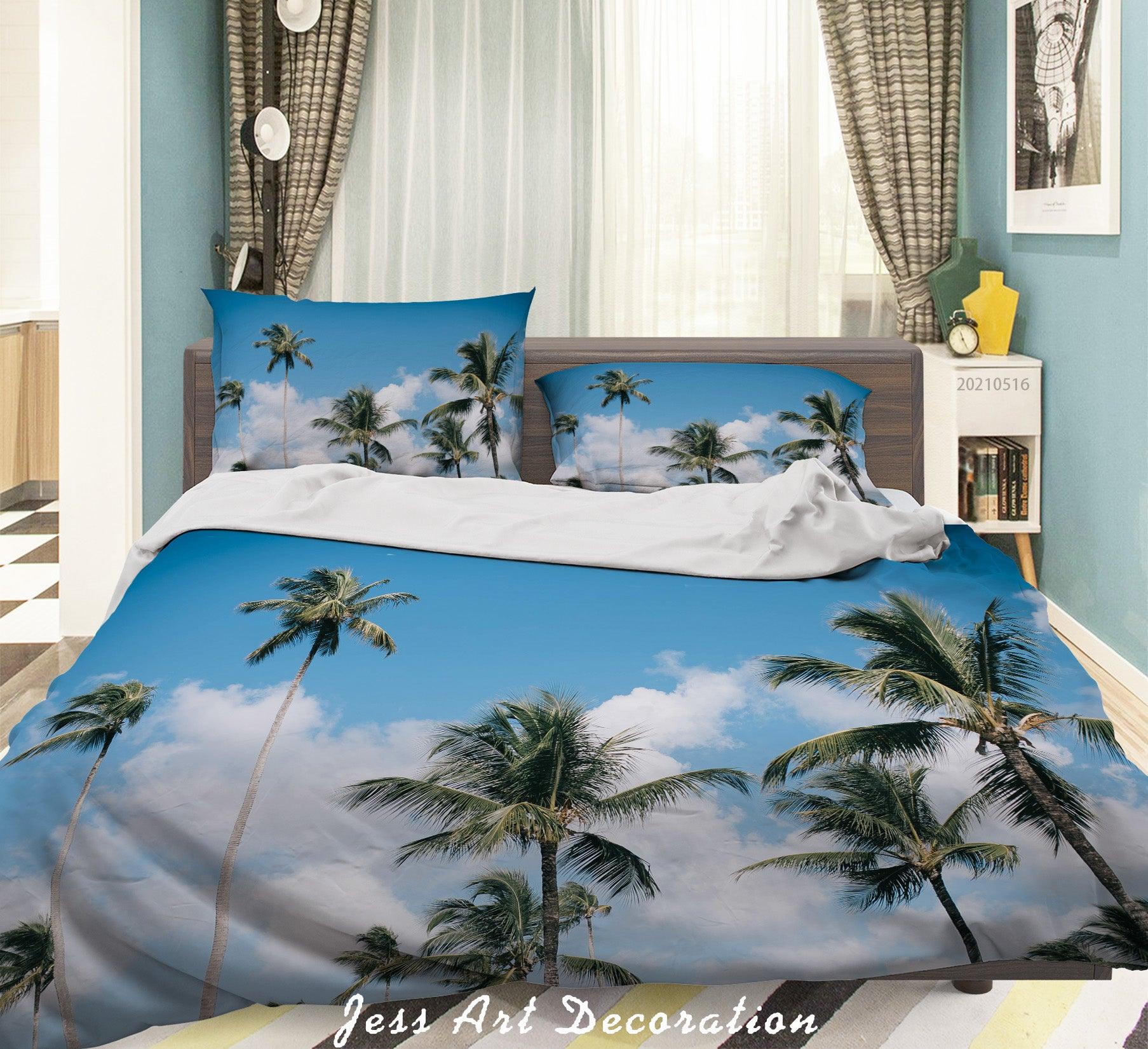 3D Blue Sky Cloud Coconut Tree Quilt Cover Set Bedding Set Duvet Cover Pillowcases 7